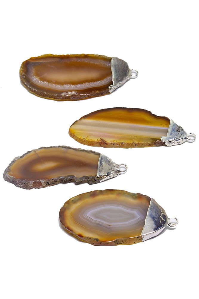 Sertifikalı Ham Doğal Kahverengi Akik Taşı Plaka Kolye