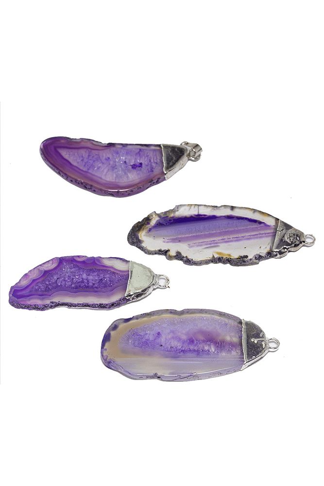 Sertifikalı Ham Doğal Mor Akik Taşı Plaka Kolye