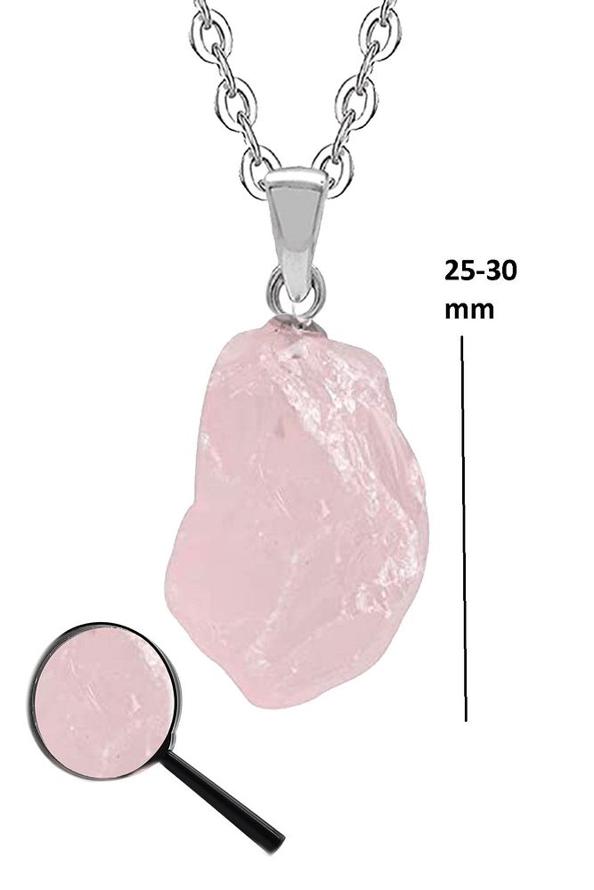 Sertifikalı Ham Işlenmemiş Açık Pembe Kuvars Taşı Kolye