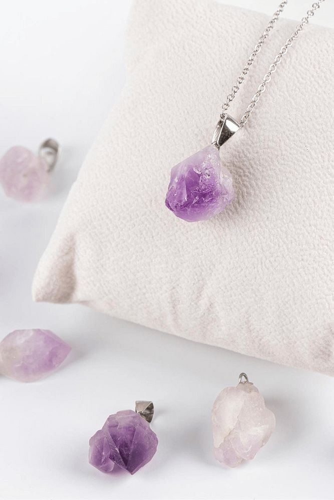Sertifikalı Ham Işlenmemiş Ametist Taşı Kolye - Gümüş Aparatlı