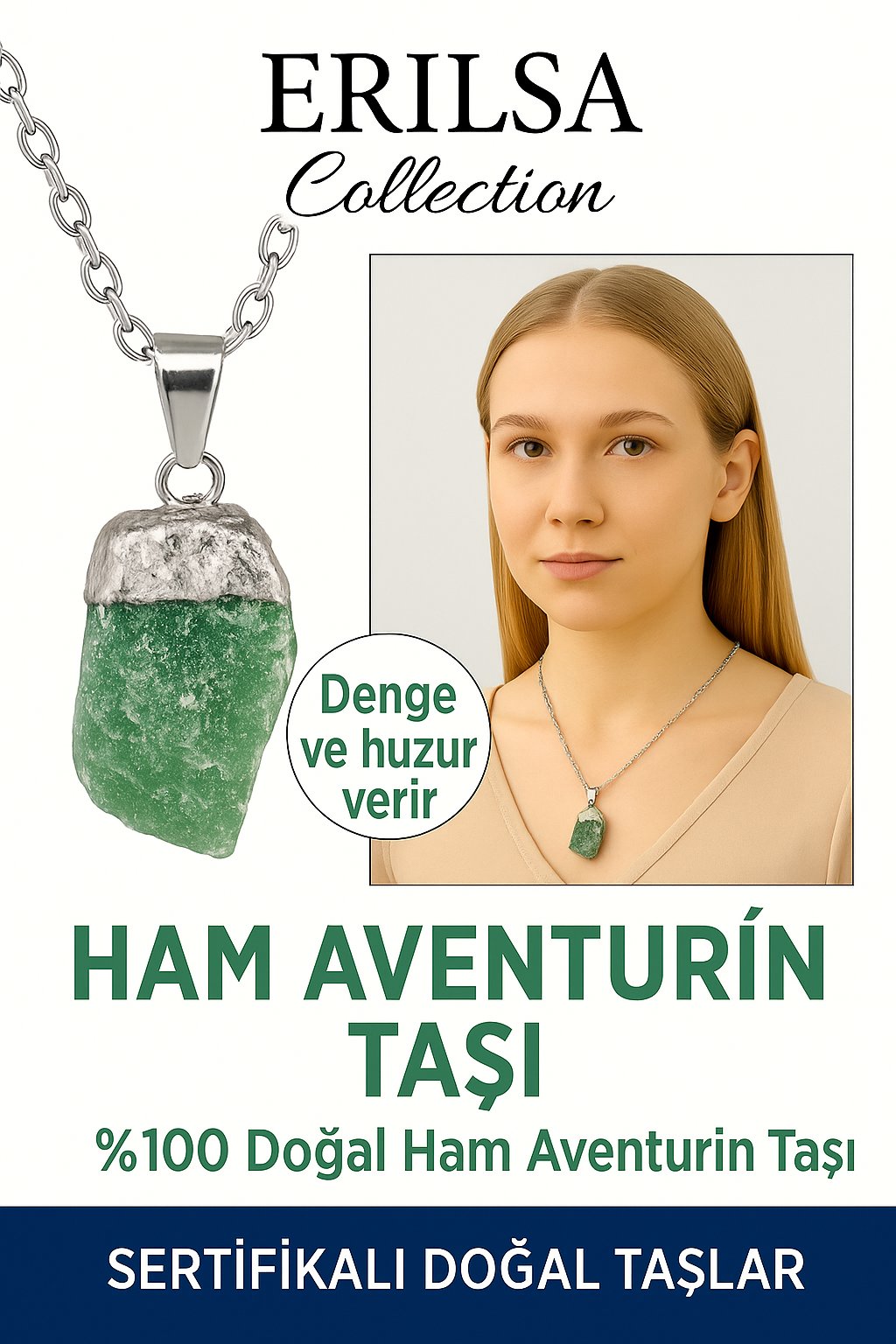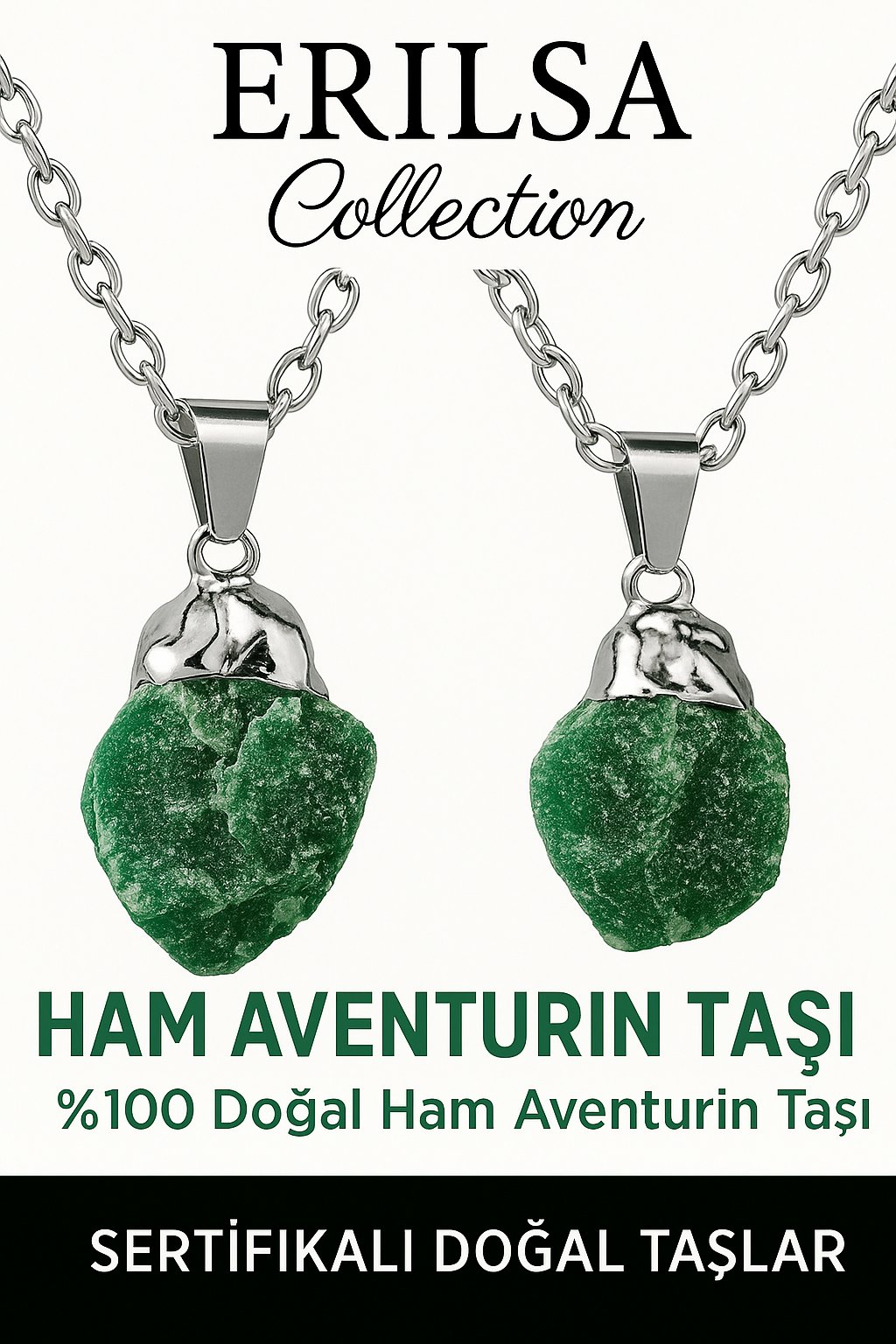Sertifikalı Ham İşlenmemiş Aventurin Taşı Kolye – Şans, Bolluk ve Kalp Dengeleyici Doğal Taş