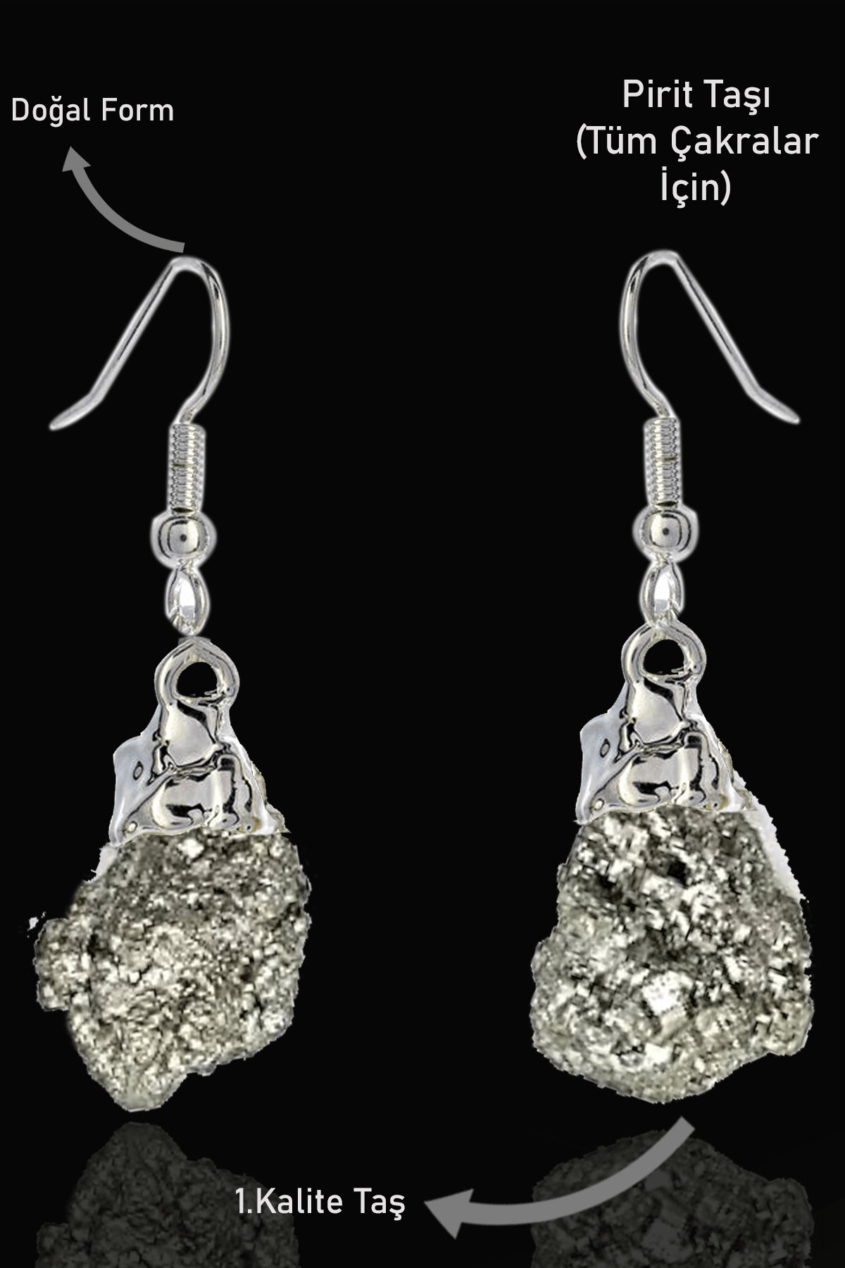 Bu tasarımımızda; %100 Doğal Pirit Taşı kullanılmıştır.