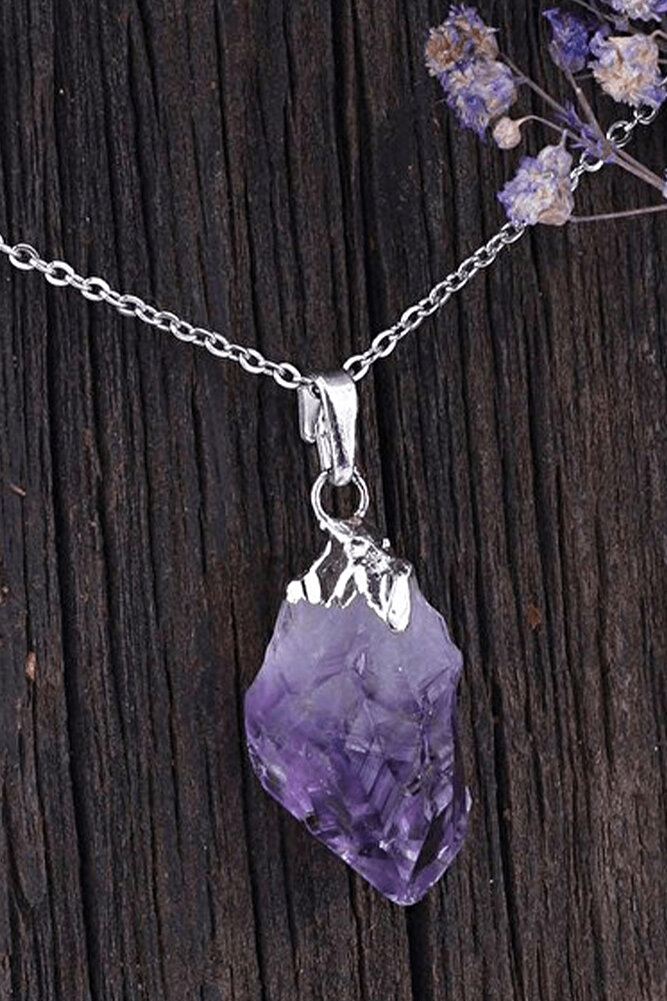 Sertifikalı Ham Işlenmemiş Kaya Doğal Ametist Taşı Kolye (1.KALİTE)