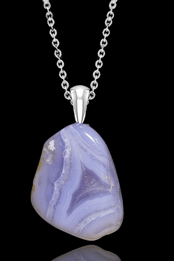Sertifikalı Ham Işlenmemiş Mavi Kalsedon Taşı Kolye
