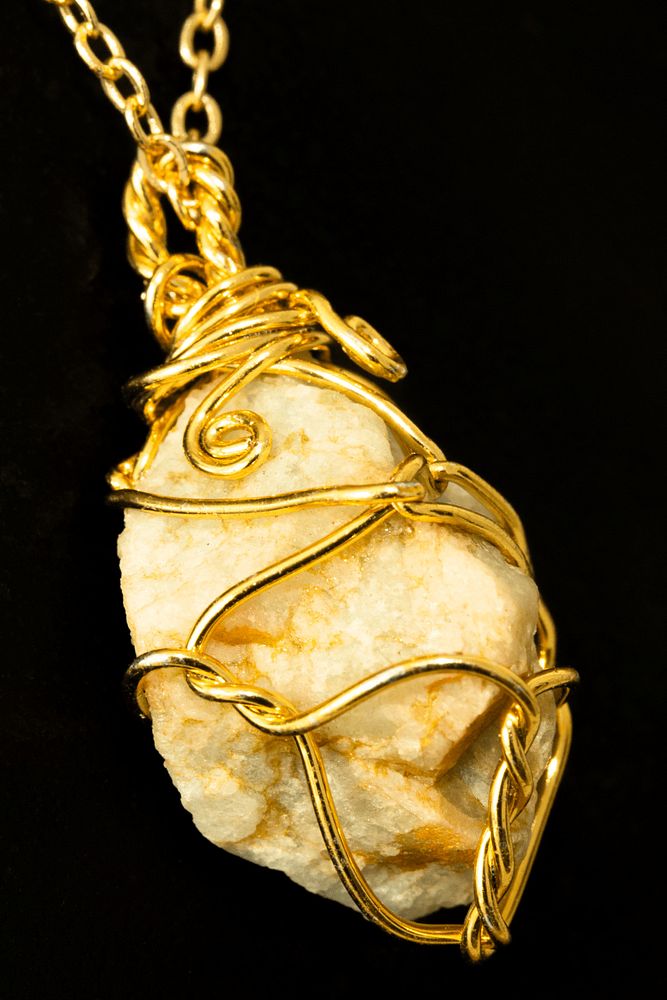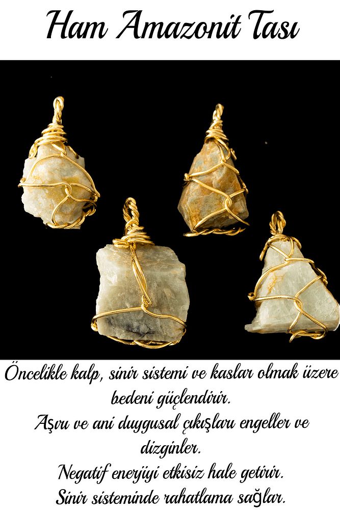 Sertifikalı Ham Işlenmemiş Tel Sargılı Amazonit Taşı Kolye - Altın Kaplama
