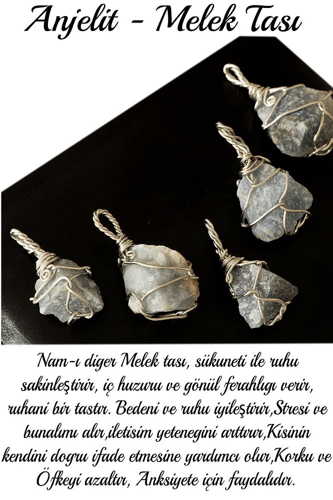 Bu doğal taş kolye tasarımımızda; Angelit melek taşı kolye kullanılmıştır. Zincir ölçüsü 45 cm'dir. Her için uyumludur. Yetişkin ve çocuk için kullanılabilir. %100 Orijinal ve gerçek taştır. Sinirinizi stresinizi alacak, mineral açısından oldukça zengin olduğu için bulunduğu için teniniz ile temas eder etmez aradaki farkı kısa bir süre içinde hissedeceksiniz.