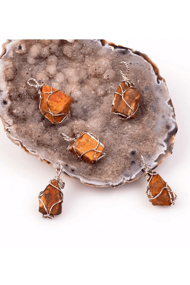 Sertifikalı Ham Işlenmemiş Tel Sargılı Kaplan Gözü Taşı Kolye
