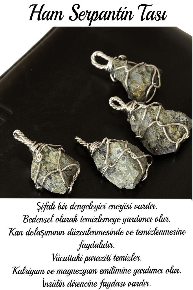 Sertifikalı Ham Işlenmemiş Tel Sargılı Serpantin - Yılan Taşı Kolye