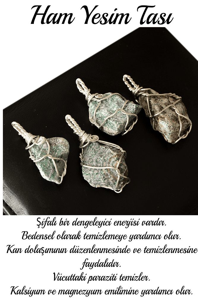 Bu doğal taş kolye tasarımımızda; Yüksek kalite doğal yeşim taşı kullanılmıştır. Zincir ölçüsü 50 cm'dir. Her için uyumludur. Yetişkin ve çocuk için kullanılabilir. %100 Orijinal ve gerçek taştır. Sinirinizi stresinizi alacak, mineral açısından oldukça zengin olduğu için bulunduğu için teniniz ile temas eder etmez aradaki farkı kısa bir süre içinde hissedeceksiniz.