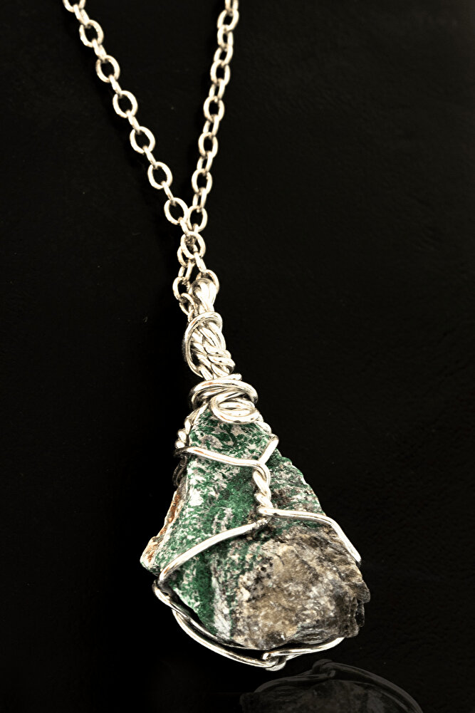 Sertifikalı Ham Işlenmemiş Tel Sargılı Yeşim Taşı Kolye