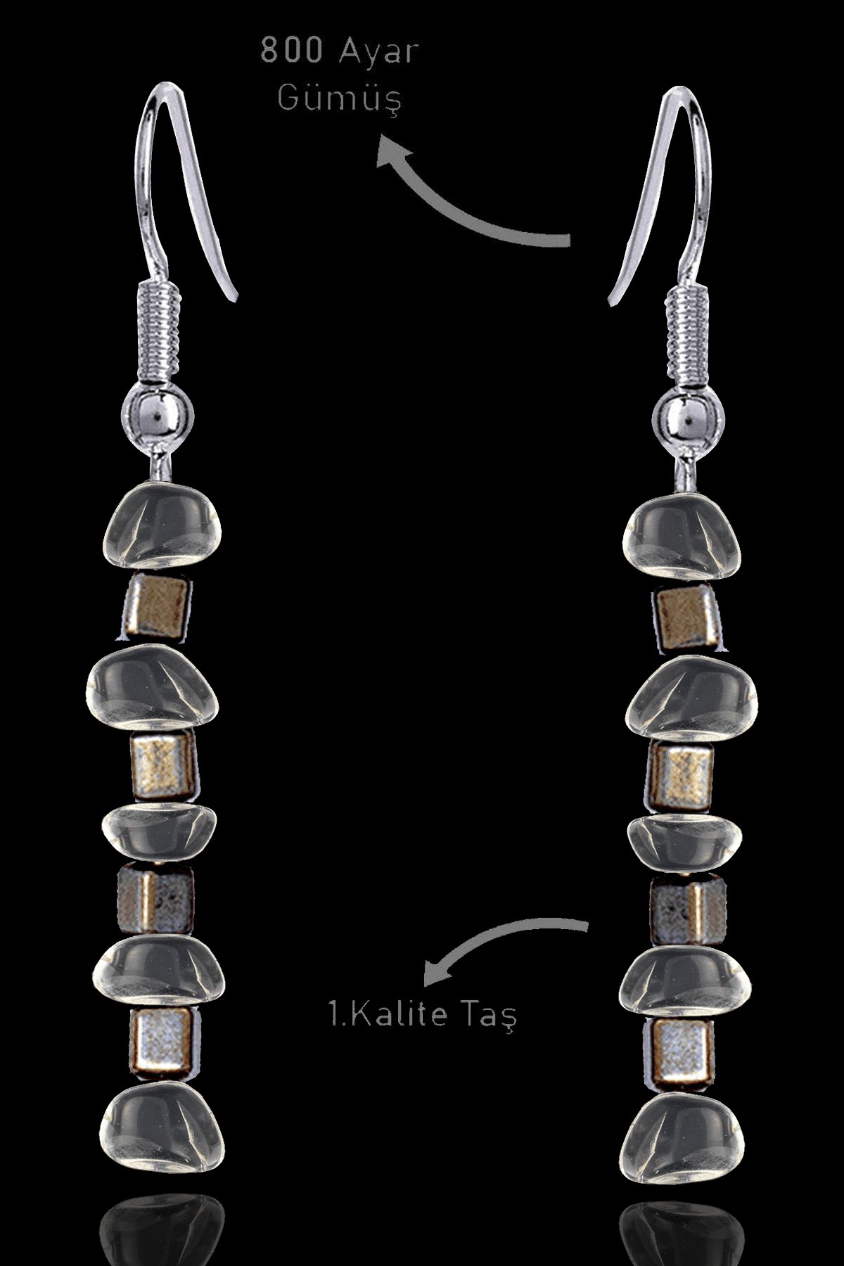 Sertifikalı Ham Kırık Taşlı Model Şeffaf Kristal Kuvars Taşı Küpe