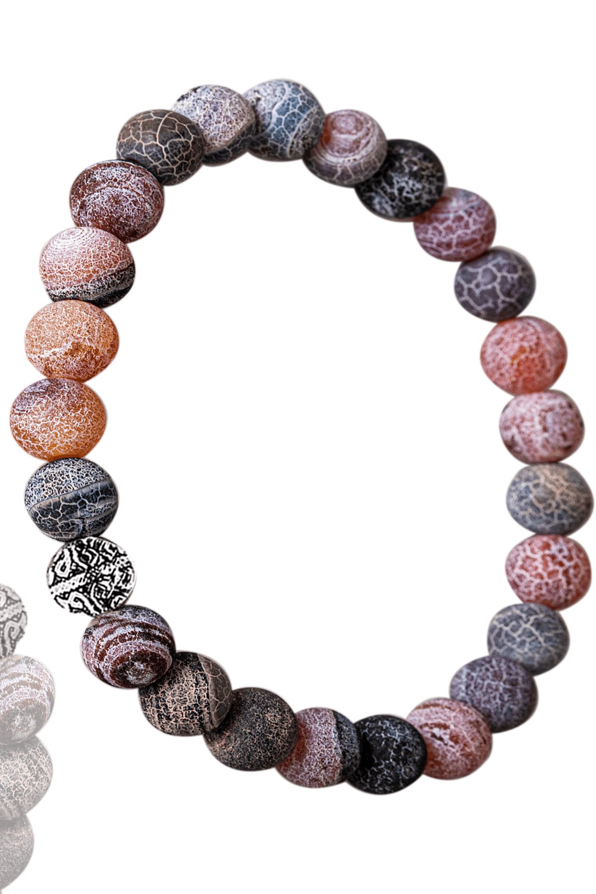 Sertifikalı Ham Kırmızı - Siyah Akik Taşı Bileklik - Gümüş Aparatlı