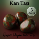 Sertifikalı doğal kan taşı (heliotrop), 30-35 mm ölçülerinde 3 adet tamburlanmış kütle taş olarak sunulmaktadır. Koyu yeşil zemin üzerinde kırmızı benekleriyle dikkat çeken kan taşı, tarih boyunca güç, dayanıklılık ve cesaret sembolü olmuştur. Enerji çalışmaları, meditasyon ve spiritüel denge için kullanılan güçlü bir şifa taşıdır. Her taş doğanın eşsiz izlerini taşır; renk ve desen farklılıkları tamamen doğal yapısından kaynaklanır. Sertifikalı yapısıyla güvenle koleksiyonunuza ekleyebilir veya sevdiklerinize anlamlı bir hediye olarak sunabilirsiniz.