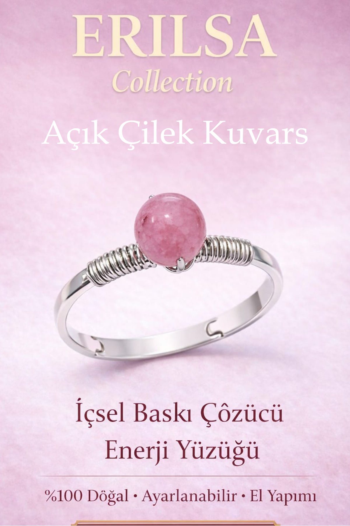 Açık Çilek Kuvars taşı, içsel baskıların hafiflemesine ve duygusal yüklerin dengelenmesine yardımcı olduğu düşünülen özel bir taştır. Özellikle bastırılmış duygular, içsel gerginlik ve huzursuzluk hissi yaşayan kişiler için tercih edilir.