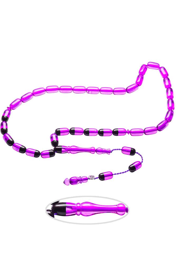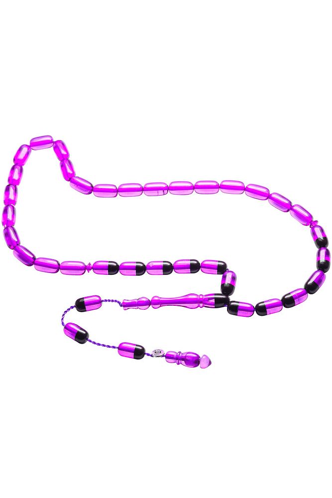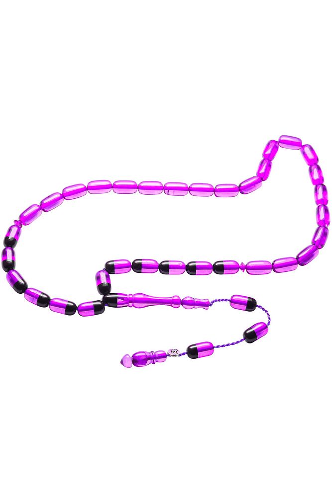 Sertifikalı Imzalı Açık Mor Siyah Ateş Kehribar Tesbih