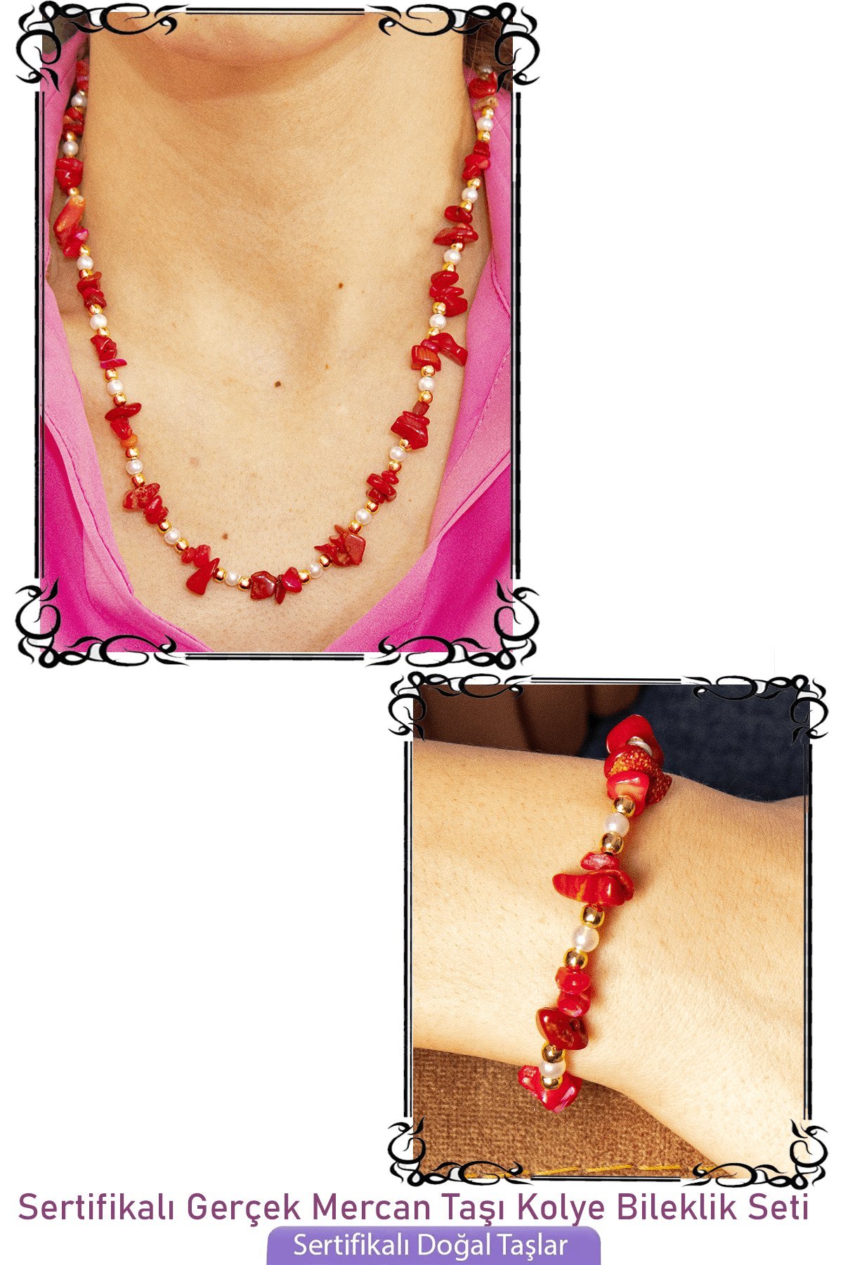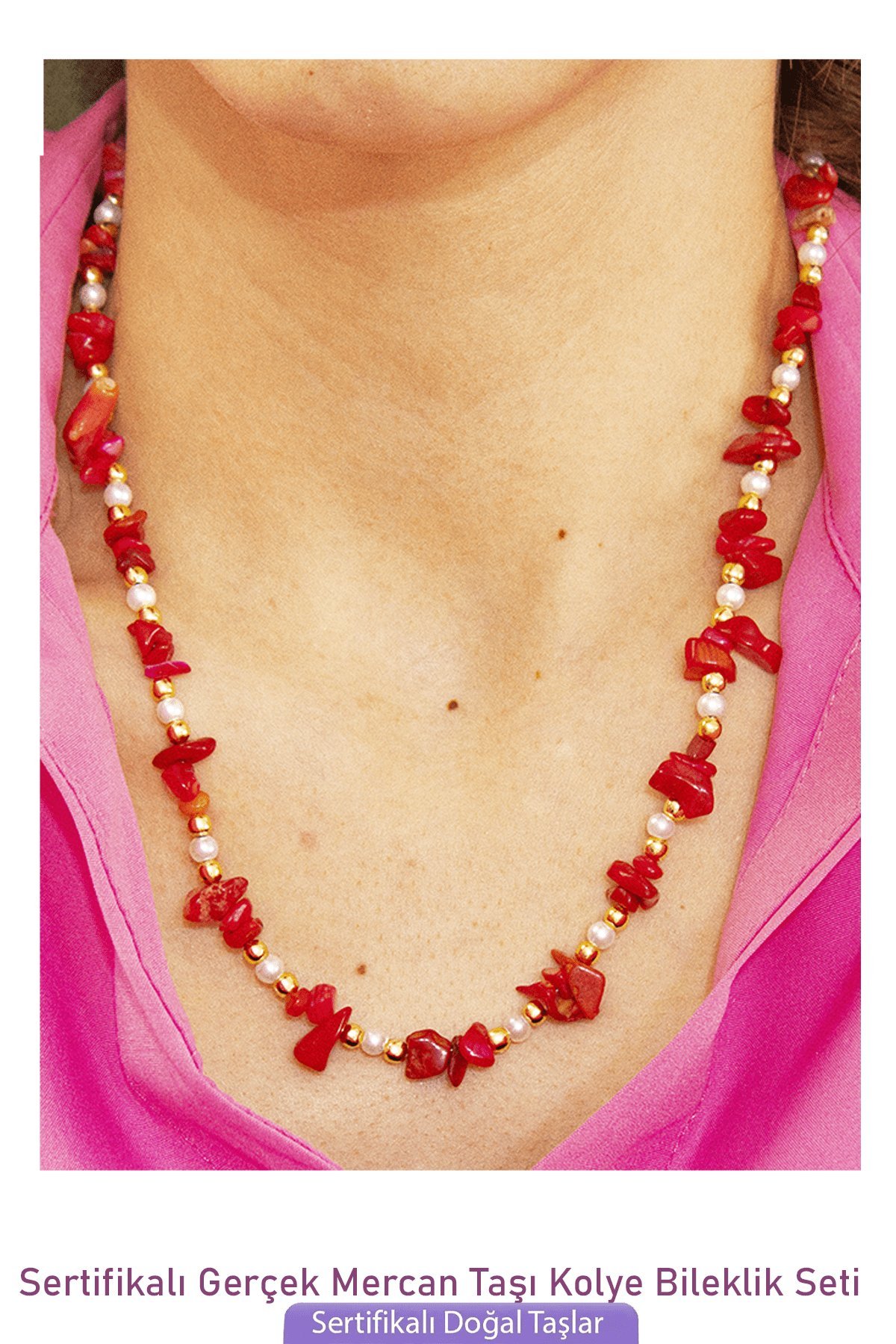 Bu doğal taş kolye tasarımımızda; Kırmızı mercan taşı kullanılmıştır. Kolye ölçüsü 45 cm'dir. Her için uyumludur. Yetişkin ve çocuk için kullanılabilir. %100 Orijinal ve gerçek taştır. Sinirinizi stresinizi alacak, mineral açısından oldukça zengin olduğu için bulunduğu için teniniz ile temas eder etmez aradaki farkı kısa bir süre içinde hissedeceksiniz.