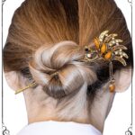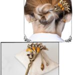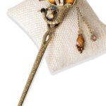 Sertifikalı Japon Stil Topuz Doğal Taş Sarı Kuvars Taşlı Saç Tokası