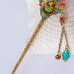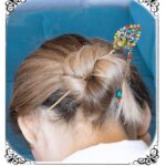Sertifikalı Japon Stil Topuz Yeşil Kuvars Çakra Taşlı Saç Tokası