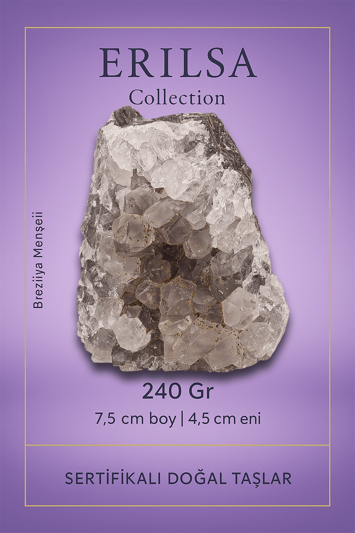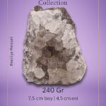 Brezilya menşeili bu özel kahverengi ametist taşı, 240 gram ağırlığında olup 7,5 cm boy ve 4,5 cm enindedir. Kristal yapısı dumanlı tonlar ve açık beyaz kristallerle harmanlanmıştır. Bu yapı, taşı hem modern dekoratif alanlara hem de özel taş koleksiyonlarına uygun hâle getirir. Tamamen ham ve işlenmemiş olan bu parça, doğanın sunduğu özgün haliyle sunulmaktadır.