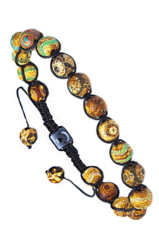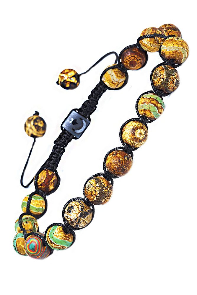 Sertifikalı Kahverengi Yeşil Çizgili Tibet Doğal Akik Taşı Bileklik