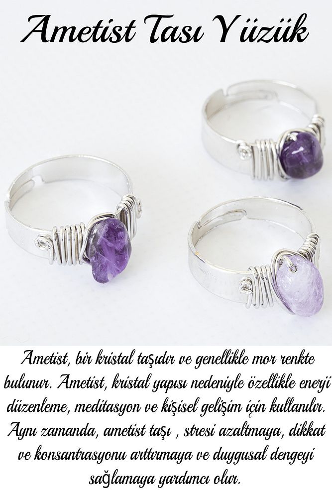 Ürün Kutusu Ürününüz '' Tesbih Atölyesi Logolu Kadife Kese '' ile gönderilmektedir. Ürün ya da Doğal Taş Açıklaması Doğal taş yüzük modelleri ''Tesbih Atölyesi'' Atölyelerinde usta ellerde siz değerli müşterimiz için özenle hazırlanmaktadır. Ürünlerimizin tamamı el emeği olup sınırlı sayıda üretilmektedir. Tasarımda kullanılan taşların her birini farklı ülkelerden ithalat etmekteyiz. Dünya'nın en kaliteli taşlarını tasarımlarımızda kullanmaktayız. Orijinallik ve garanti belgesi adınıza gönderilir. Tasarımda kullandığımız doğal taşların hiç biri birbirinin aynısı olmadığı için küçükte olsa farklılıklar gösterebilir. Bu tasarımda; Doğal Ametist taşı kullanılmıştır. Kasadaki desenler oyma el sanatı ile yapılmaktadır. Üretildiği Taş : Ametist Taşı Ana Renk : Doğal Renk Ağırlık : 10-15 Gr Parmak Ölçüsü : Ayarlanabilir Mekanizmalı Her Parmağa Uyumlu! - Maden: Sıvı ve kimyasal temasında renk atar (Lak Kaplamalı)