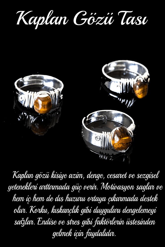 Ürün Kutusu Ürününüz '' Tesbih Atölyesi Logolu Kadife Kese '' ile gönderilmektedir. Ürün ya da Doğal Taş Açıklaması Doğal taş yüzük modelleri ''Tesbih Atölyesi'' Atölyelerinde usta ellerde siz değerli müşterimiz için özenle hazırlanmaktadır. Ürünlerimizin tamamı el emeği olup sınırlı sayıda üretilmektedir. Tasarımda kullanılan taşların her birini farklı ülkelerden ithalat etmekteyiz. Dünya'nın en kaliteli taşlarını tasarımlarımızda kullanmaktayız. Orijinallik ve garanti belgesi adınıza gönderilir. Tasarımda kullandığımız doğal taşların hiç biri birbirinin aynısı olmadığı için küçükte olsa farklılıklar gösterebilir. Bu tasarımda; Doğal kaplan gözü taşı kullanılmıştır. Kasadaki desenler oyma el sanatı ile yapılmaktadır. Üretildiği Taş : Kaplan Gözü Taşı Ana Renk : Doğal Renk Ağırlık : 10-15 Gr Parmak Ölçüsü : Ayarlanabilir Mekanizmalı Her Parmağa Uyumlu! - Maden: Sıvı ve kimyasal temasında renk atar (Lak Kaplamalı)