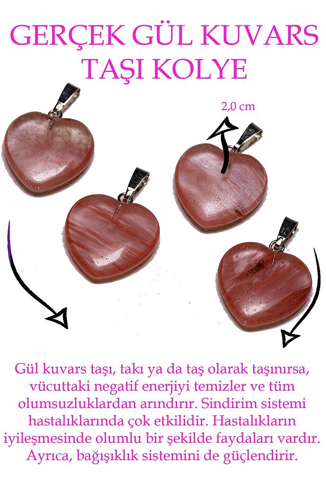 Sertifikalı Kalp Kesim Gül Kuvars Taşı Kolye