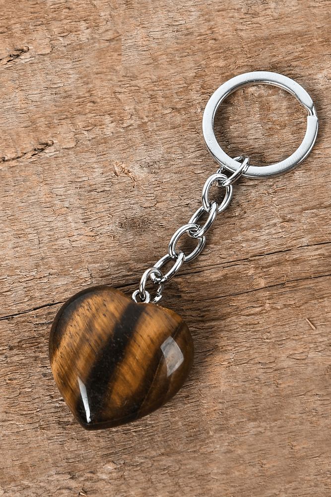 Sertifikalı Kalp Kesim Kaplan Gözü Taşı Doğal Taş Anahtarlık
