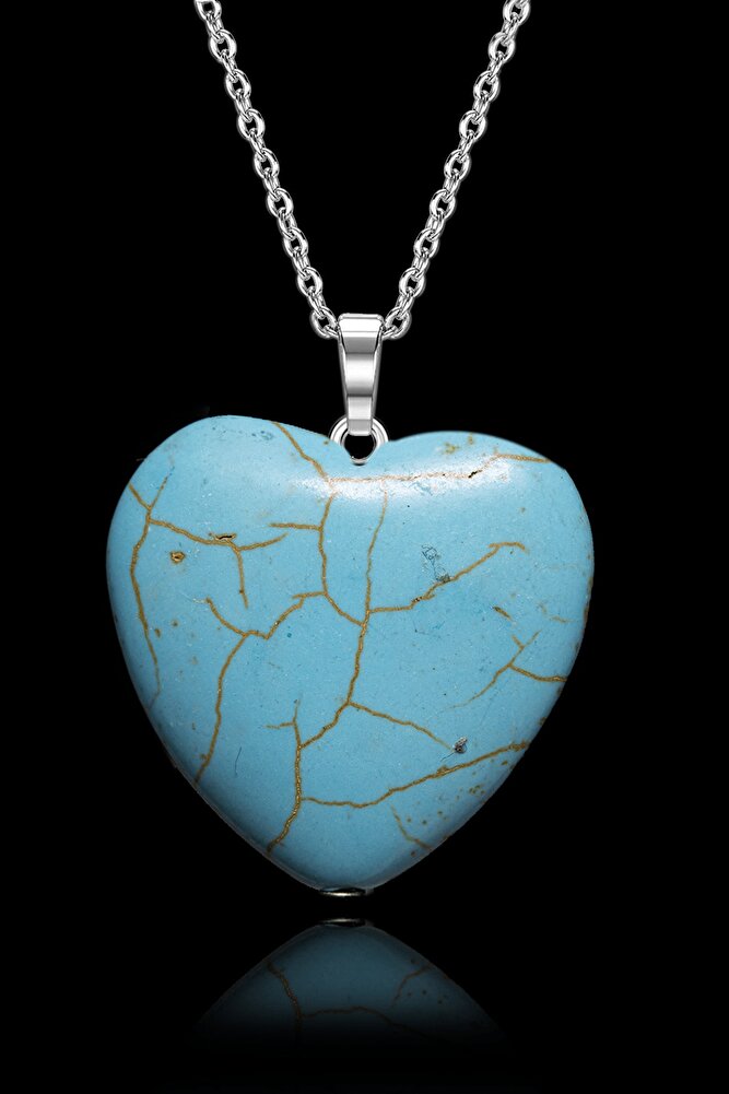 Sertifikalı Kalp Kesim Turkuaz Taşı Kolye