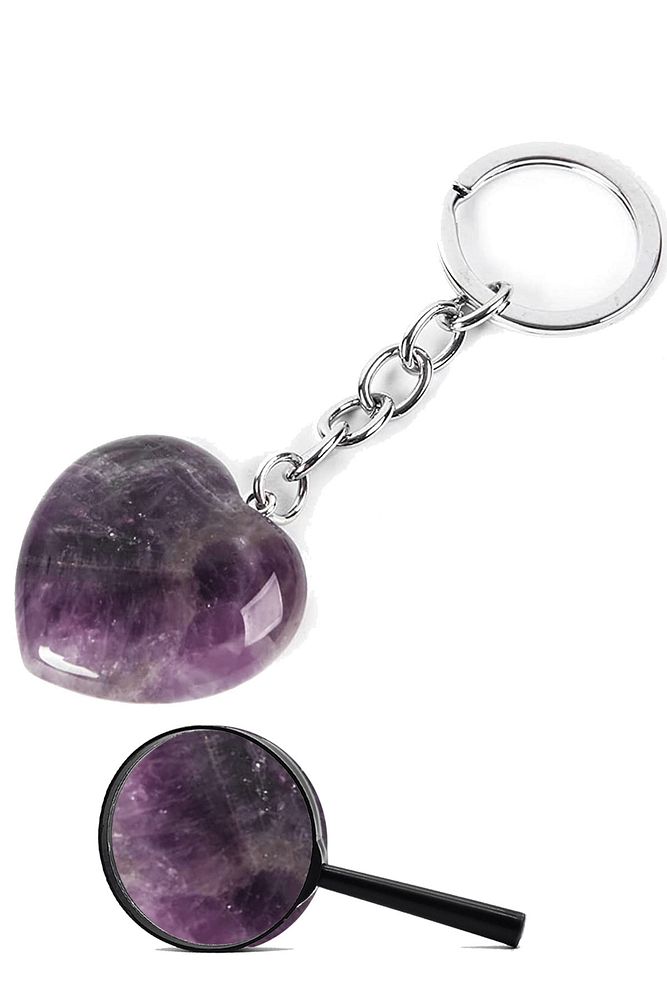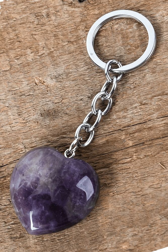 Sertifikalı Kalp Model Ametist Doğal Taş Anahtarlık