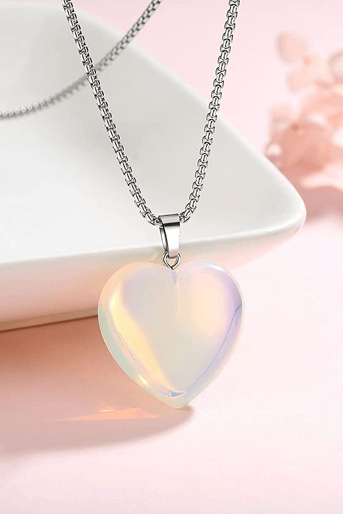 Sertifikalı Kalp Model Gerçek Opal Ay Taşı Kolye