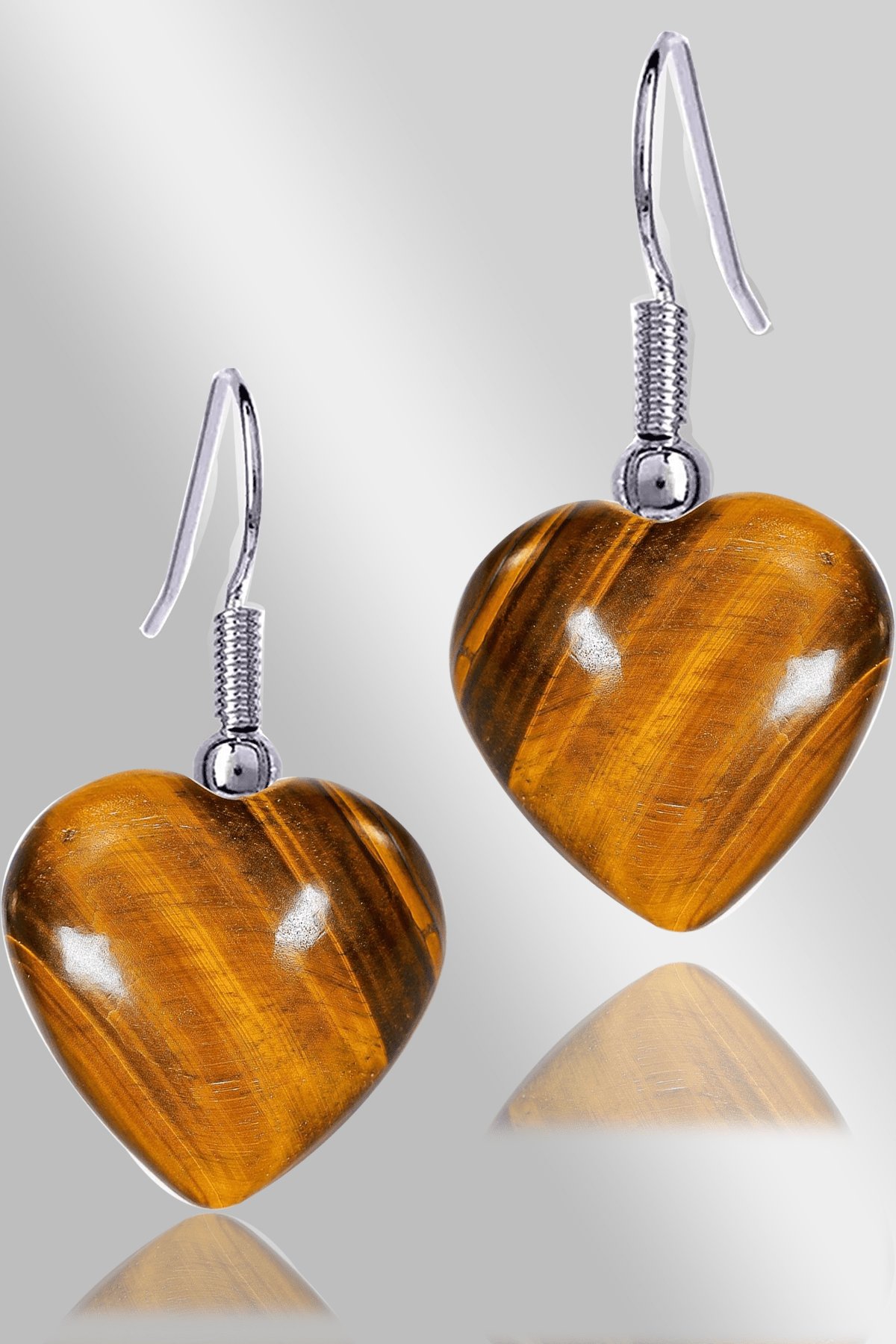 Sertifikalı Kalp Model Kaplan Gözü Taşı Doğal Taş Küpe