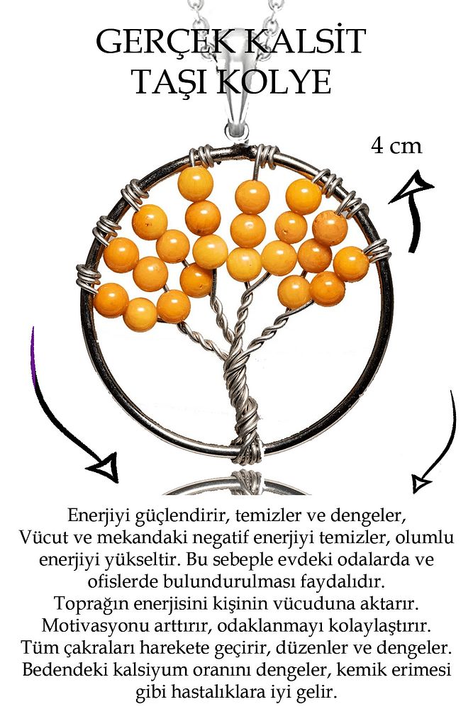 Sertifikalı Kalsit Taşı Hayat Ağacı Kolye