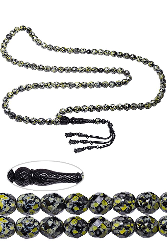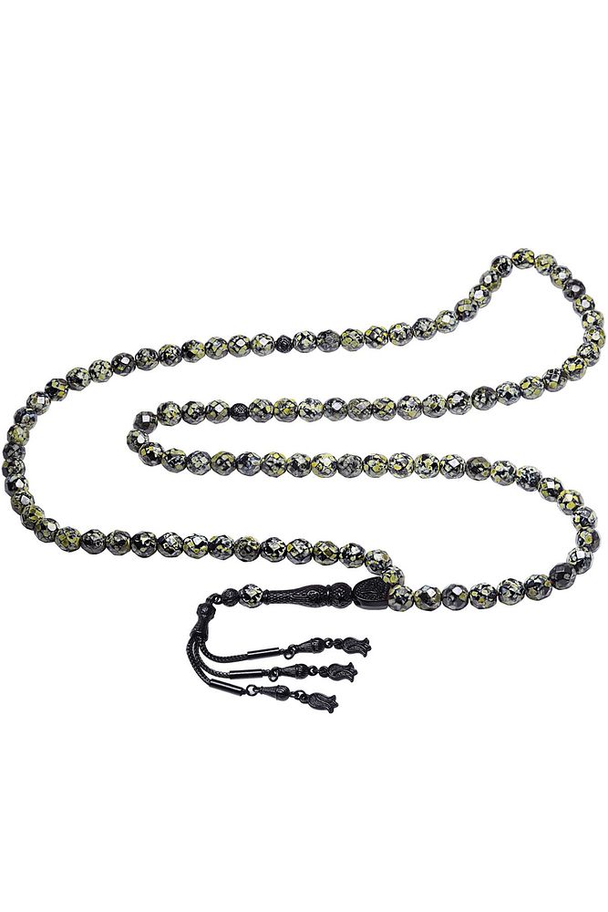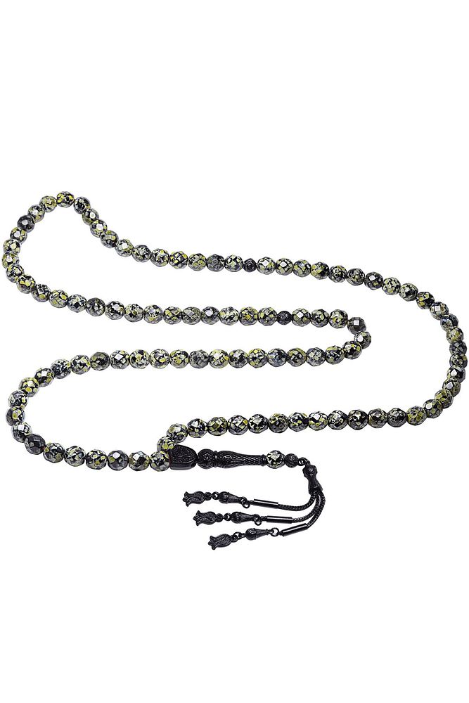 Ürün ya da Doğal Taş Açıklaması; ; (Para - Sağlık - Pozitif Enerji Taşı); ; Yeşil akik tesbih modelleri, \'\'Tesbih Atölyesi\'\' Atölyelerinde ustalarımız tarafından kuru torna işciliği ile elde özen ile tane tane işlenmektedir. Ürünlerimiz el işciliği olduğu için sınırlı sayıda üretilmektedir. Tasarımlarımızda kullandığımız taşlar Dünya\'nın en kaliteli doğal taşlarını kullanmaktayız. Tasarımlarımızda kullandığımız doğal taşların hiç biri birbirinin aynısı olmadığı için küçükte olsa farklılık gösterebilir. Doğal taşlar vücudunuza temas ettiği anda negatif enerjilerinizi alır ve pozitif enerjiler verir.; ; Bu tasarımda; Yeşil akik taşı ve siyah nikel imame ve püskül seti kullanılmıştır. Çift kaplama atılıdığı için renk atmaz ve kararmaz bir yapıya sahiptir. Yedek ip ile gönderim sağlanır. ; ; Üretildiği Taş; Akik; Ana Renk; Doğal Renk; Ağırlık; 40-50 gr; Tane Şekli; 9x9 mm; Tane Ölçüsü; Küre Kesim; Toplam Uzunluk; 40-50cm; İmame ve Püskül Maddesi; Düşük Ayar Gümüş;