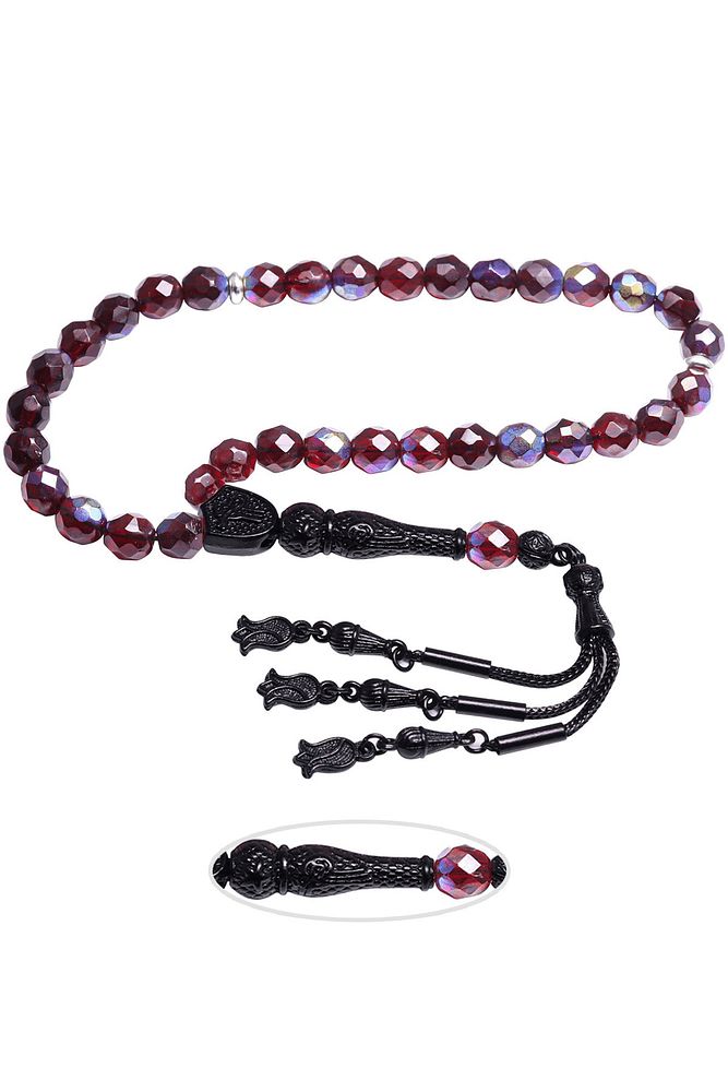 Ürün ya da Doğal Taş Açıklaması (Para - Sağlık - Pozitif Enerji Taşı) Kuvars tesbih modelleri, ''Tesbih Atölyesi'' Atölyelerinde ustalarımız tarafından kuru torna işciliği ile elde özen ile tane tane işlenmektedir. Ürünlerimiz el işciliği olduğu için sınırlı sayıda üretilmektedir. Tasarımlarımızda kullandığımız taşlar Dünya'nın en kaliteli doğal taşlarını kullanmaktayız. Tasarımlarımızda kullandığımız doğal taşların hiç biri birbirinin aynısı olmadığı için küçükte olsa farklılık gösterebilir. Doğal taşlar vücudunuza temas ettiği anda negatif enerjilerinizi alır ve pozitif enerjiler verir. Bu tasarımda; Bordo renkli kuvars taşı ve Siyah nikel alaşımlı imame ve püskül seti kullanılmıştır. Çift kaplama atıldığı için renk atmaz ve kararmaz bir yapıya sahiptir. Yedek ip ile gönderim sağlanır. Üretildiği Taş; Kuvars; Ana Renk; Doğal Renk; Ağırlık; 20-30 gr; Tane Şekli; 8x8 mm; Tane Ölçüsü; Küre Kesim; Toplam Uzunluk; 20-30 cm; İmame ve Püskül Maddesi; Düşük Ayar Gümüş;