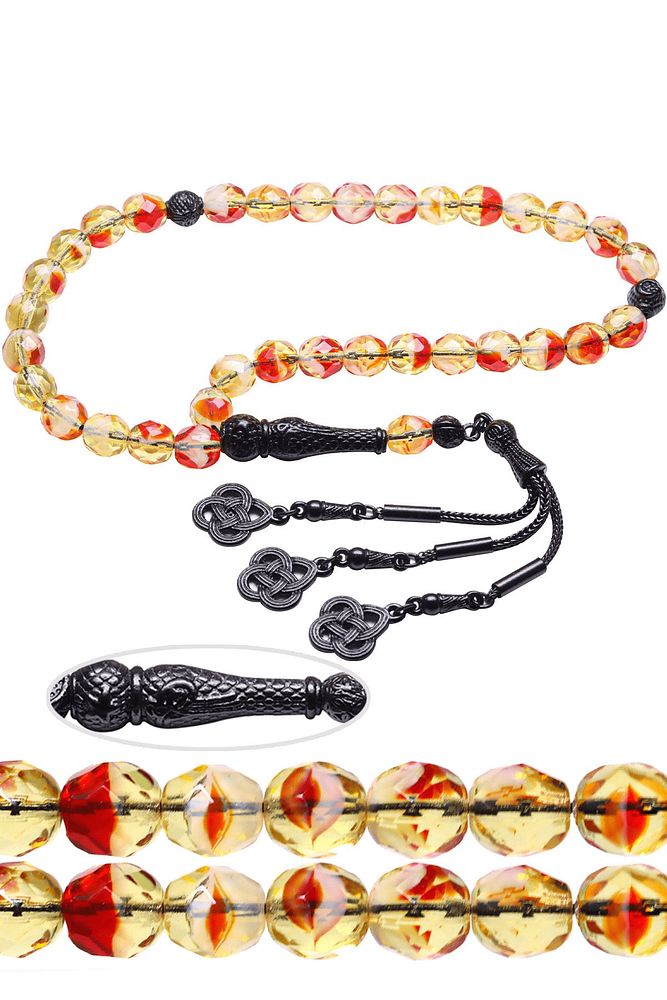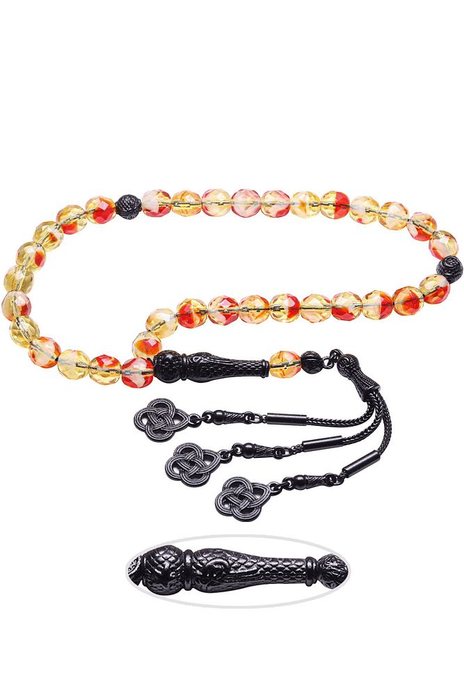 Ürün ya da Doğal Taş Açıklaması (Para - Sağlık - Pozitif Enerji Taşı) Kuvars tesbih modelleri, ''Tesbih Atölyesi'' Atölyelerinde ustalarımız tarafından kuru torna işciliği ile elde özen ile tane tane işlenmektedir. Ürünlerimiz el işciliği olduğu için sınırlı sayıda üretilmektedir. Tasarımlarımızda kullandığımız taşlar Dünya'nın en kaliteli doğal taşlarını kullanmaktayız. Tasarımlarımızda kullandığımız doğal taşların hiç biri birbirinin aynısı olmadığı için küçükte olsa farklılık gösterebilir. Doğal taşlar vücudunuza temas ettiği anda negatif enerjilerinizi alır ve pozitif enerjiler verir. Bu tasarımda; Kırmızı beyaz renkli fasetli kuvars taşı ve Siyah nikel alaşımlı imame ve püskül seti kullanılmıştır. Çift kaplama atıldığı için renk atmaz ve kararmaz bir yapıya sahiptir. Yedek ip ile gönderim sağlanır. Üretildiği Taş; Kuvars; Ana Renk; Doğal Renk; Ağırlık; 20-30 gr; Tane Şekli; 8x8 mm; Tane Ölçüsü; Küre Kesim; Toplam Uzunluk; 20-30cm; İmame ve Püskül Maddesi; Nikel Alaşımlı;