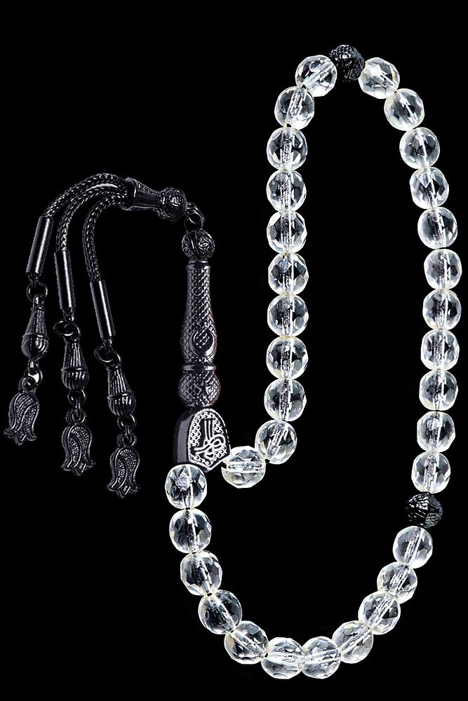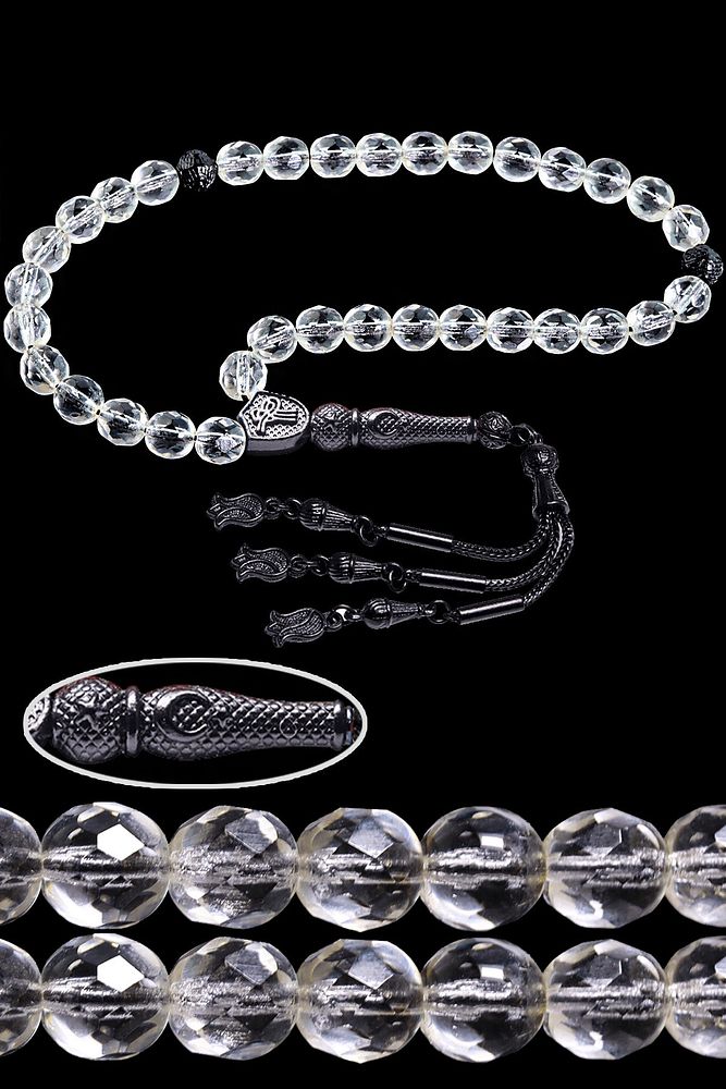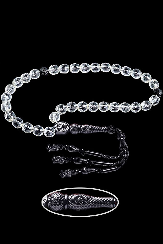 (Dağ Kristali Sinir ve Stres Taşı); ; Necef taşı tesbih modelleri, Dünya'nın en kaliteli necef taşlarını kullanmaktayız. Zaman içerisinde oluşan kuvars taşlarının içerisine su dolması ile arasındaki çatlaklara yayılması sonucu oluşmaktadır. Ürünlerimiz el işciliği olduğu için sınırlı sayıda üretilmektedir. Tasarımlarımızda kullandığımız taşları Dünya'nın en kaliteli doğal taşlarını ithal etmekteyiz. Tasarımlarımızda kullandığımız doğal taşların hiç biri birbirinin aynısı olmadığı için küçükte olsa farklılık gösterebilir. ; ; Bu tasarımda; Doğal İran necef kristali kullanılmıştır. Siyah nikel alaşımlı imame ve püskül seti kullanılmıştır. Çift kaplama atıldığı için renk atmaz ve kararmaz bir yapıya sahiptir. Yedek ip ile gönderim sağlanır. ; Üretildiği Taş; Necef Taşı; Ana Renk; Doğal Renk; Ağırlık; 20-30 gr; Tane Şekli; 8x8 mm; Tane Ölçüsü; Küre Kesim; Toplam Uzunluk; 20-30 cm; İmame ve Püskül Maddesi; Nikel Alaşımlı;