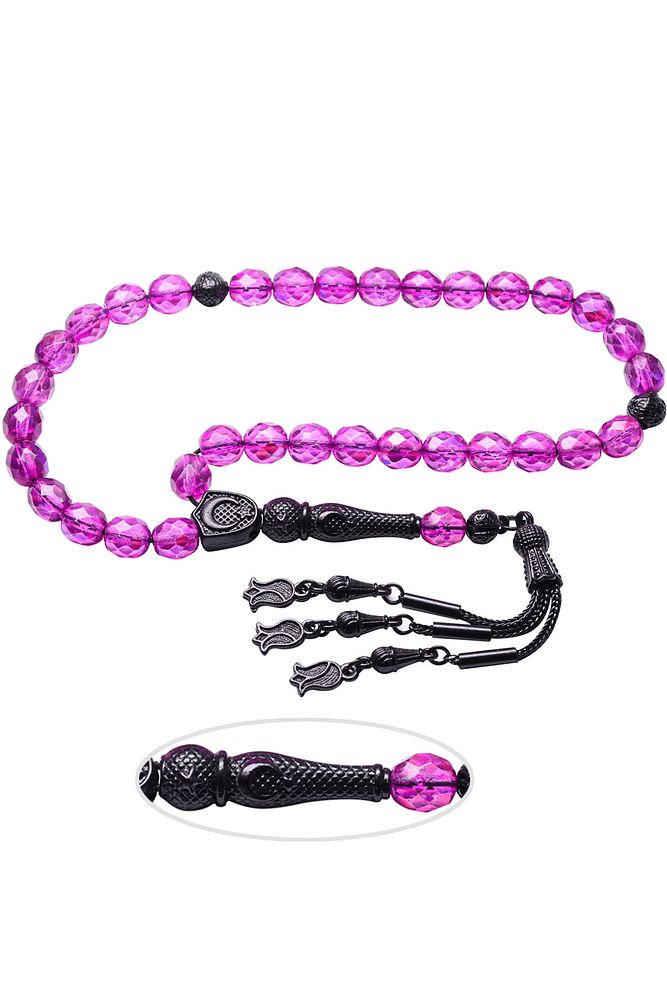 Sertifikalı Kararmaz Püskül Fasetli Mor Doğal Kristal Kuvars Taşı Tesbih