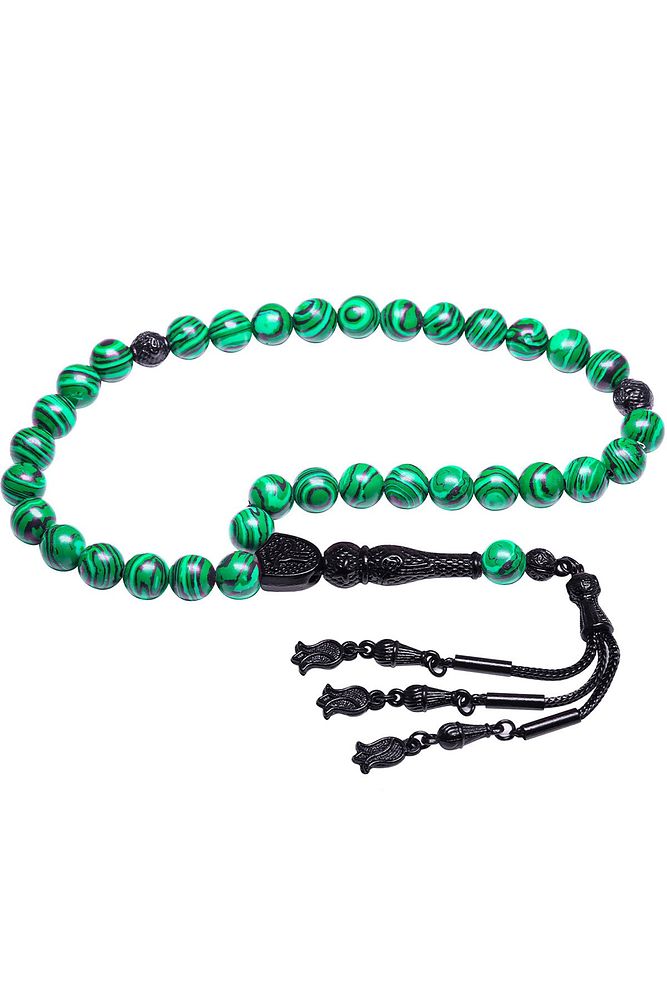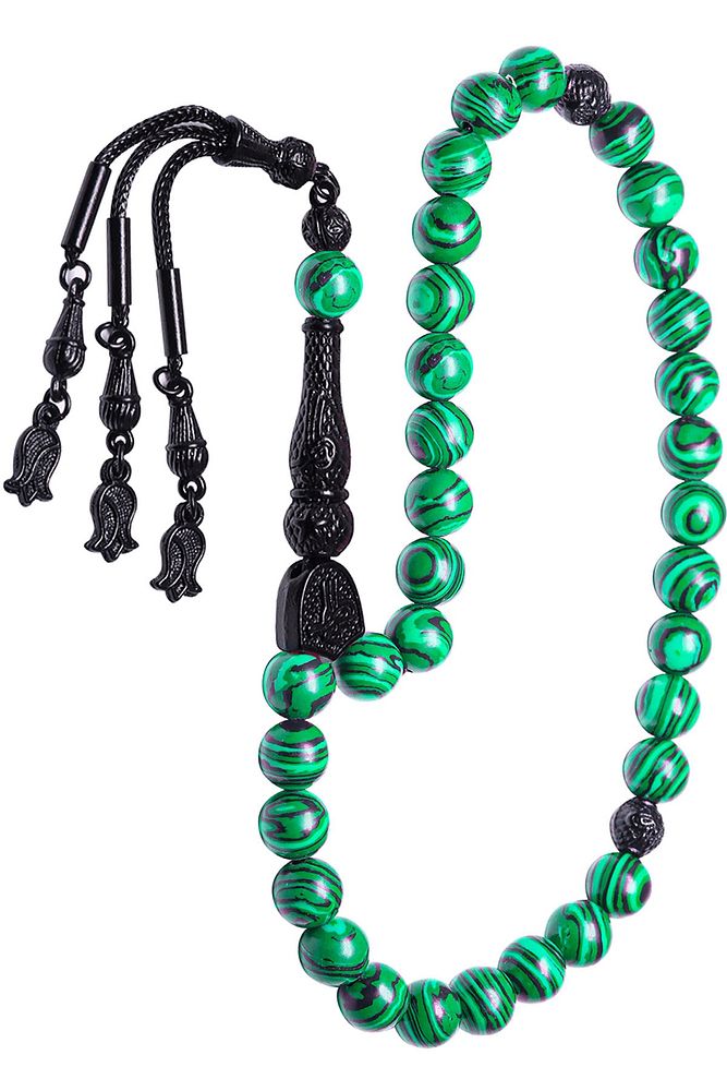 Ürün ya da Doğal Taş Açıklaması (Pozitif Enerji, Para ve Sağlık Taşı) Fransız galalit tesbih modelleri, \'\'Tesbih Atölyesi\'\' Atölyelerinde ustalarımız tarafından kuru torna işciliği ile elde özen ile tane tane işlenmektedir. Ürünlerimiz el işciliği olduğu için sınırlı sayıda üretilmektedir. Tasarımlarımızda kullandığımız taşlar Dünya\'nın en kaliteli taşlarını ithal etmekteyiz. Bu tasarımda; \'\'İnek sütü ile karıştırılan özel yeşil siyah renkli fransız galalit taşından imal edilmiştir. İmame ve Püskül yapımında; Siyah nikel alaşımlı imame ve püskül seti kulanılmıştır. \'Çift kaplama rodaj sistemi uygulandığı için renk atmaz ve kararmaz bir yapıya sahiptir. Üretildiği Taş; Galalit Taşı; Ana Renk; Doğal Renk; Ağırlık; 20-30 gr; Tane Şekli; 8x8 mm; Tane Ölçüsü; Küre Kesim; Toplam Uzunluk; 20-30 cm; İmame ve Püskül Maddesi; Nikel Alaşımlı;