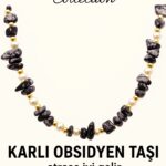 Sertifikalı Kırık Taşlı Model İnci – Karlı Obsidyen Taşı Kolye