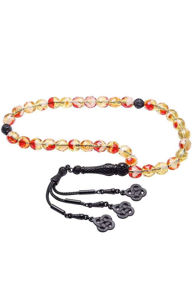 Ürün ya da Doğal Taş Açıklaması (Para - Sağlık - Pozitif Enerji Taşı) Kuvars tesbih modelleri, \'\'Tesbih Atölyesi\'\' Atölyelerinde ustalarımız tarafından kuru torna işciliği ile elde özen ile tane tane işlenmektedir. Ürünlerimiz el işciliği olduğu için sınırlı sayıda üretilmektedir. Tasarımlarımızda kullandığımız taşlar Dünya\'nın en kaliteli doğal taşlarını kullanmaktayız. Tasarımlarımızda kullandığımız doğal taşların hiç biri birbirinin aynısı olmadığı için küçükte olsa farklılık gösterebilir. Doğal taşlar vücudunuza temas ettiği anda negatif enerjilerinizi alır ve pozitif enerjiler verir. Bu tasarımda; Kırmızı beyaz renkli fasetli kuvars taşı ve Siyah nikel alaşımlı imame ve püskül seti kullanılmıştır. Çift kaplama atıldığı için renk atmaz ve kararmaz bir yapıya sahiptir. Yedek ip ile gönderim sağlanır. Üretildiği Taş; Kuvars; Ana Renk; Doğal Renk; Ağırlık; 40-50 gr; Tane Şekli; 8x8 mm; Tane Ölçüsü; Küre Kesim; Toplam Uzunluk; 20-30cm; İmame ve Püskül Maddesi; Nikel Alaşımlı;