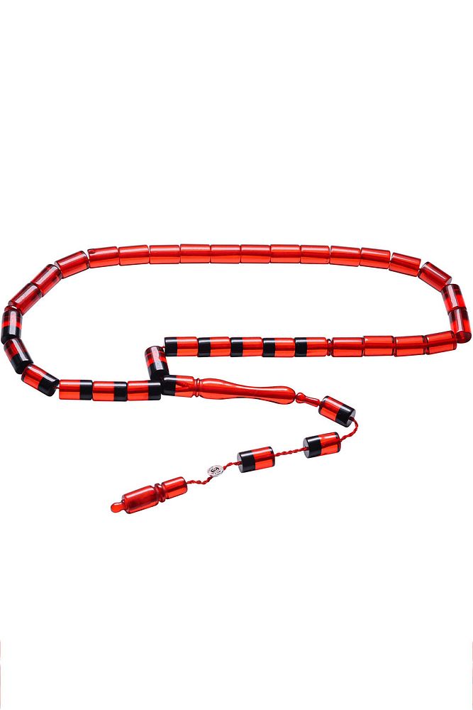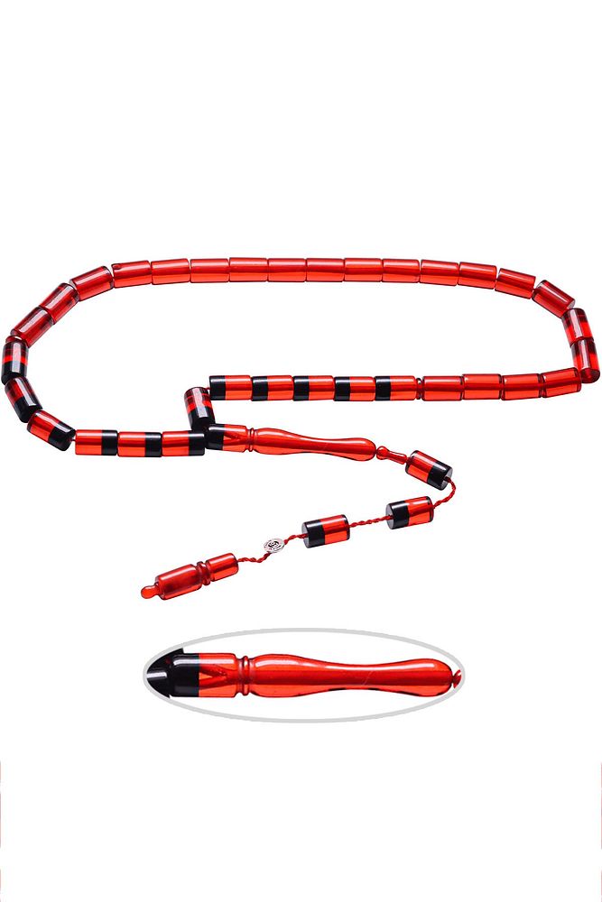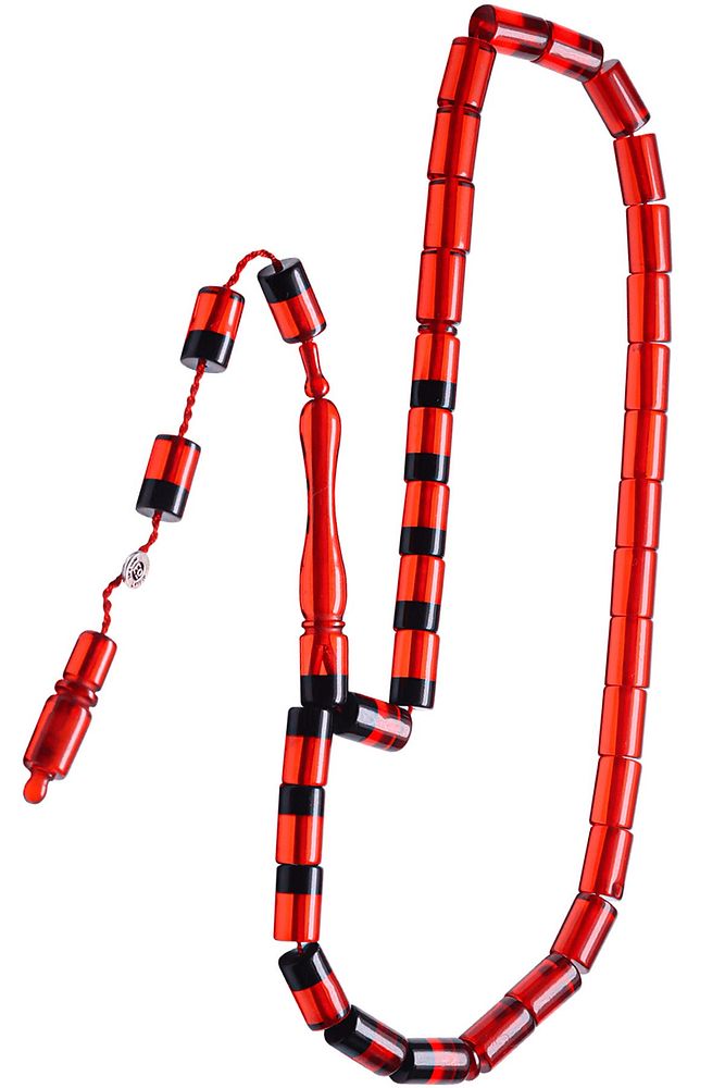 (Kuru Torna İşciliği Ultra Parlak Muhteşem Cilalı Ateş Kehribar) ; ; Ateş Kehribar tesbih modelleri, \'\'Tesbih Atölyesi\'\' Atölyelerinde ustalarımız tarafından kuru torna işciliği ile elde özen ile tane tane işlenmektedir. Ürünlerimiz el işciliği olduğu için sınırlı sayıda üretilmektedir. Üzerine üç kat el cilası atılmıştır. Tasarımlarımızda kullandığımız ürünler sizlere özel ağaç kutusu ile gönderilecektir. ; ; Bu tasarımda; Mor ve siyah renkli kesme kesim Ateş kehribar kullanılmıştır. Asla sararma ve solma yapmayacaktır. Sıralı sistem ile dizilmiştir. ; ; Üretildiği Malzeme ; Ateş Kehribar; Renk ; Kırmızı ve Siyah Renk ; Ağırlık ; 20-30 gr ; Tane Şekli ; 7x12 mm ; Tane Ölçüsü ; Kesme Kesim ; Toplam Uzunluk ; 20-30 cm ; İmame ve Püskül Maddesi ; Sistemli ;