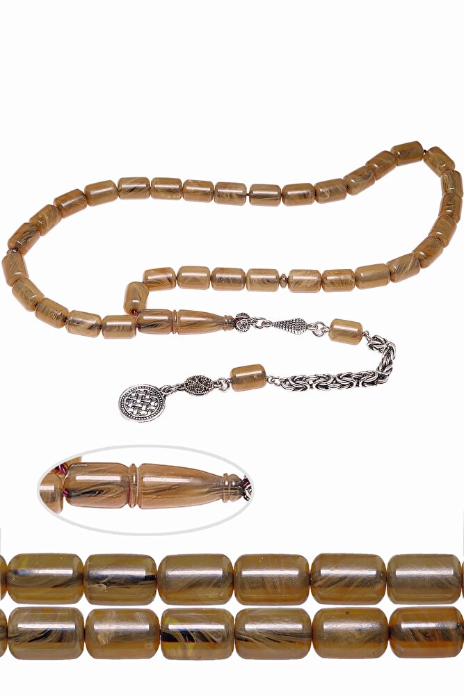 ; Ürün ya da Doğal Taş Açıklaması; ; (Baş Ağrısı Sinir ve Stres); ; Tesbih Atölyesi, Sıkma kehribar tesbih, tasarımları özel olarak usta ellerde tasarlanır. Tasarımlarımız el yapımı olup sınırlı adette üretilmektedir. Tasarımlarda kullanılan püsküller düşük ayar gümüşten imal edilir. Tasarımlarda kullanılan kehribar taneleri hareli özel kalıplardan yapılır. Yapay reçine ile üretilmektedir. Ürünlerimiz renk almakta ve koku vermektedirler. ; ; Bu tasarımda; Bej renkli yoğun hareli özel renk alan kaliteli sıkma kehribar reçine kullanılmıştır. Her kehribar tanesi birbirinin aynısı olmadığı için küçükte olsa farklılıklar gösterebilir.; ; Üretildiği Malzeme; Sıkma Kehribar; Ana Renk; Bej Renk; Ağırlık; 20-30 gr; Tane Şekliü; 8x12 mm; Tane Ölçüsü; Kapsül Kesim; Toplam Uzunluk; 20-30 cm; İmame ve Püskül Maddesi; Düşük Ayar Gümüş;