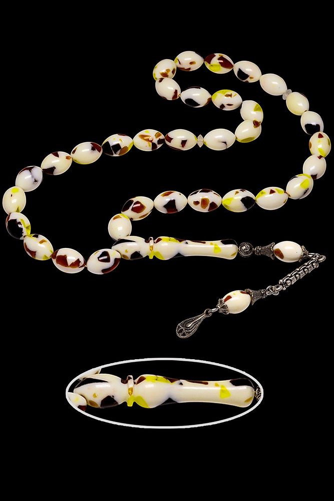 Ürün ya da Doğal Taş Açıklaması (Para - Sağlık - Pozitif Enerji Taşı) Toz Kehribar Tesbih modelleri, ''Tesbih Atölyesi'' Atölyelerinde ustalarımız tarafından kuru torna işciliği ile elde özen ile tane tane işlenmektedir. Ürünlerimiz el işciliği olduğu için sınırlı sayıda üretilmektedir. Tasarımlarımızda kullandığımız taşlar Dünya'nın en kaliteli yapay reçinesi kullanmaktayız. Toz kehribar tesbih modellerimizin kalite olarak ateş ve sıkma kehribardan hiç bir farkı yoktur. Aradaki tek fark ateş ve sıkma kehribar tesbihin renk almasıdır. Bu tasarımda; Parçacıklı çeşitli renklerden oluşan toz kehribar kullanılmıştır. İmame ve Püskül yapımında; Düşük ayar gümüş kullanılmıştır. Çift kaplama rodaj atıldığı için renk atmaz ve kararmaz bir yapıya sahiptir. Üretildiği Malzeme; Toz Kehribar; Ana Renk; Çeşitli Renk; Ağırlık; 20-30 gr; Tane Şekli; 7.7x11.5 mm; Tane Ölçüsü; Beyzi Kesim; Toplam Uzunluk; 20-30 cm; İmame ve Püskül Maddesi; Düşük Ayar Gümüş;