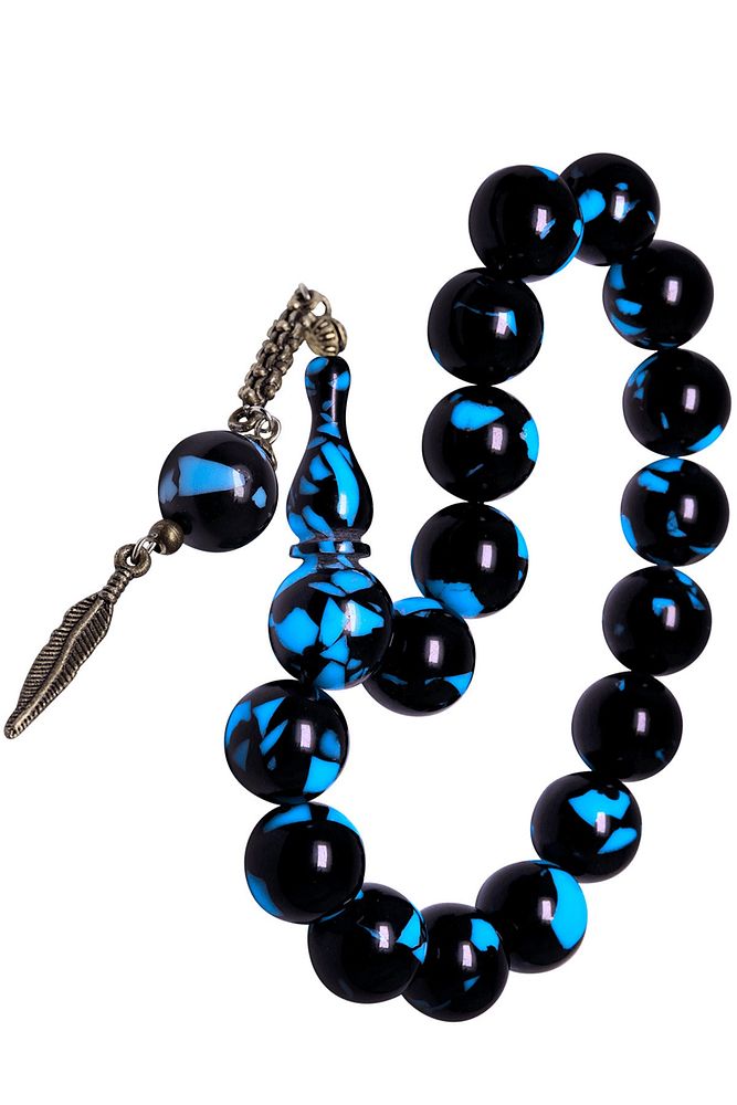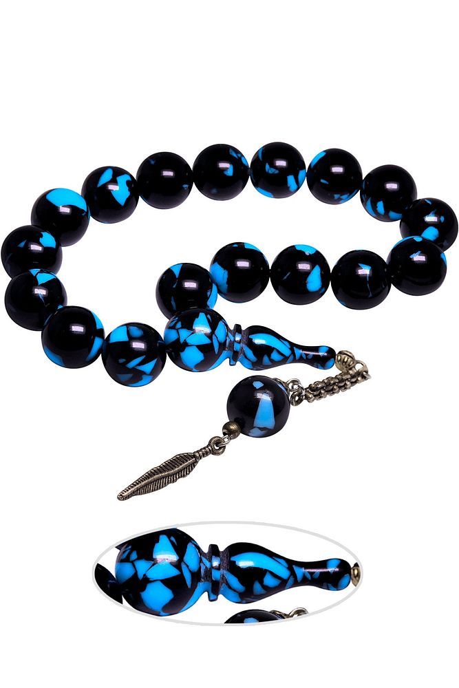Sertifikalı Kral Püskül Efe Maskot Mavi Siyah Arizona Toz Kehribar Tesbih