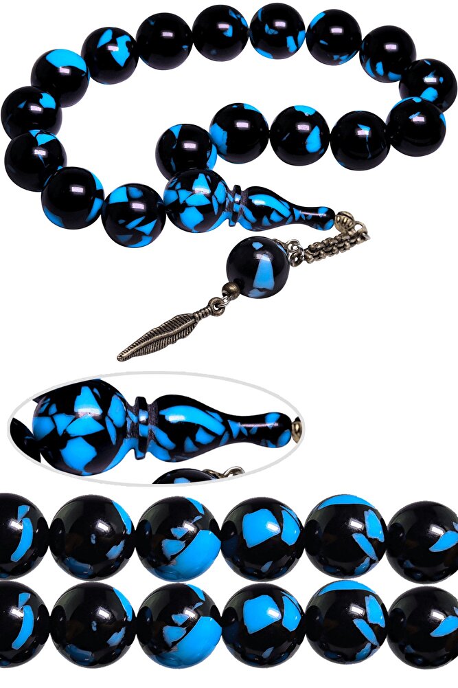 Ürün ya da Doğal Taş Açıklaması (Para - Sağlık - Pozitif Enerji Taşı) Efe Maskot Toz Kehribar Tesbih modelleri, ''Tesbih Atölyesi'' Atölyelerinde ustalarımız tarafından kuru torna işciliği ile elde özen ile tane tane işlenmektedir. Ürünlerimiz el işciliği olduğu için sınırlı sayıda üretilmektedir. Tasarımlarımızda kullandığımız taşlar Dünya'nın en kaliteli yapay reçinesi kullanmaktayız. Toz kehribar tesbih modellerimizin kalite olarak ateş ve sıkma kehribardan hiç bir farkı yoktur. Aradaki tek fark ateş ve sıkma kehribar tesbihin renk almasıdır. Bu tasarımda; Arizona mavi siyah renkli toz kehribar kullanılmıştır. İmame ve Püskül yapımında; Düşük ayar gümüş kullanılmıştır. Çift kaplama rodaj atıldığı için renk atmaz ve kararmaz bir yapıya sahiptir. Üretildiği Malzeme; Arizona Toz Kehribar; Ana Renk; Siyah - Mavi Renk; Ağırlık; 20-30 gr; Tane Şekli; 13.6x13.6 mm; Tane Ölçüsü; Küre Kesim; Toplam Uzunluk; 20-30 cm; İmame ve Püskül Maddesi; Düşük Ayar Gümüş;