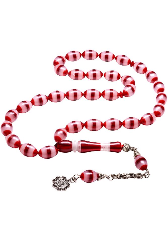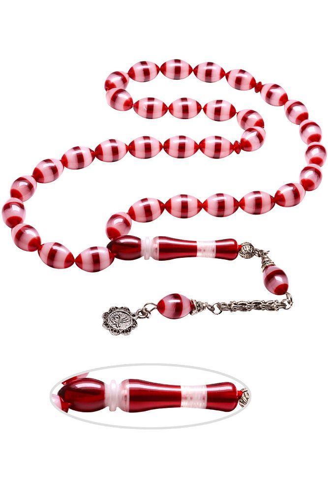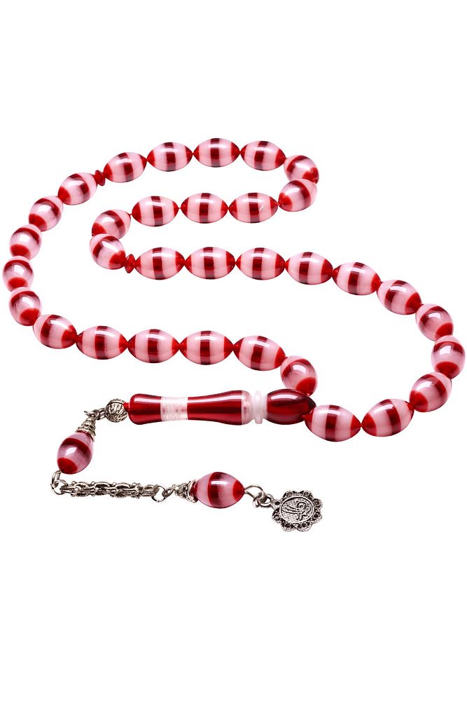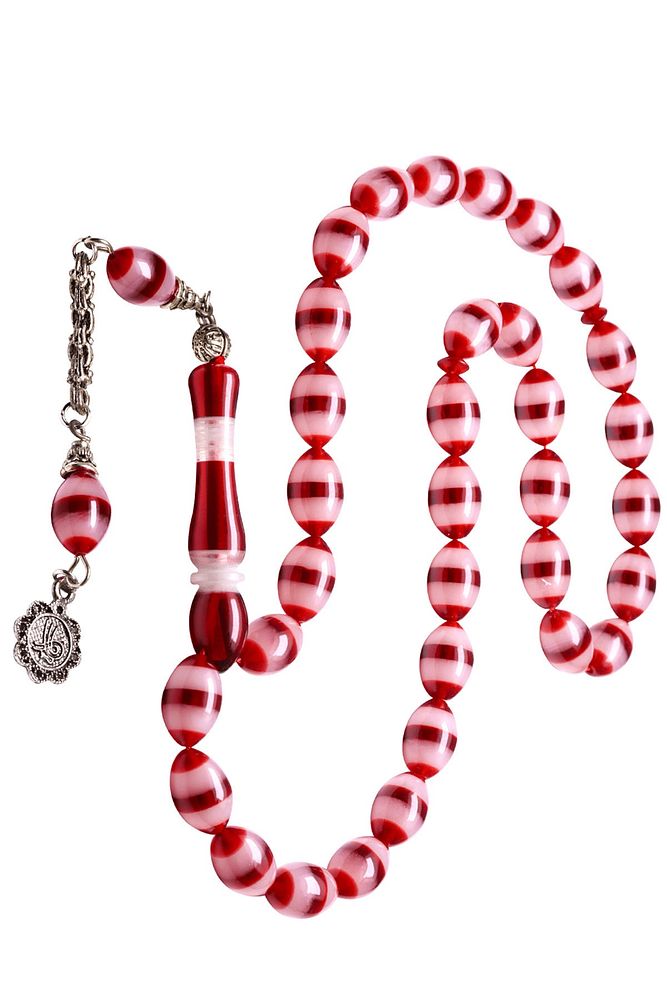 Ürün ya da Doğal Taş Açıklaması (Para - Sağlık - Pozitif Enerji Taşı) Sürmeli Toz Kehribar Tesbih modelleri, ''Tesbih Atölyesi'' Atölyelerinde ustalarımız tarafından kuru torna işciliği ile elde özen ile tane tane işlenmektedir. Ürünlerimiz el işciliği olduğu için sınırlı sayıda üretilmektedir. Tasarımlarımızda kullandığımız taşlar Dünya'nın en kaliteli yapay reçinesi kullanmaktayız. Toz kehribar tesbih modellerimizin kalite olarak ateş ve sıkma kehribardan hiç bir farkı yoktur. Aradaki tek fark ateş ve sıkma kehribar tesbihin renk almasıdır. Bu tasarımda; Pembe Kırmızı sürmeli toz kehribar kullanılmıştır. İmame ve Püskül yapımında; Düşük ayar gümüş kullanılmıştır. Çift kaplama rodaj atıldığı için renk atmaz ve kararmaz bir yapıya sahiptir. Üretildiği Malzeme; Toz Kehribar; Ana Renk; Pembe Kırmızı Sürmeli Renk; Ağırlık; 20-30 gr; Tane Şekli; 7.5x12 mm; Tane Ölçüsü; Beyzi Kesim; Toplam Uzunluk; 20-30 cm; İmame ve Püskül Maddesi; Düşük Ayar Gümüş;