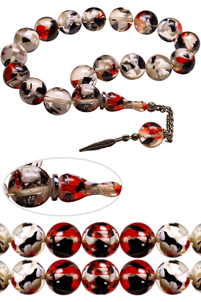 Sertifikalı Kral Püskül Mozaik Parçacıklı Efe Maskot Toz Kehribar Tesbih