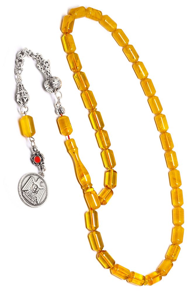 Ürün ya da Doğal Taş Açıklaması (Baş Ağrısı Sinir ve Stres) Tesbih Atölyesi, Sıkma kehribar tesbih, tasarımları özel olarak usta ellerde tasarlanır. Tasarımlarımız el yapımı olup sınırlı adette üretilmektedir. Tasarımlarda kullanılan püsküller düşük ayar gümüşten imal edilir. Tasarımlarda kullanılan kehribar taneleri hareli özel kalıplardan yapılır. Yapay reçine ile üretilmektedir. Ürünlerimiz renk almakta ve koku vermektedirler. Bu tasarımda; Sarı şeffaf renkli özel renk hüzmesi özel 1.kalite sıkma kehribar reçine kullanılmıştır. Her kehribar tanesi birbirinin aynısı olmadığı için küçükte olsa farklılıklar gösterebilir. Üretildiği Malzeme; Sıkma Kehribar; Ana Renk; Sarı ve Şeffaf Renk; Ağırlık; 20-30 gr; Tane Şekli; 8x12 mm; Tane Ölçüsü; Kapsül Kesim; Toplam Uzunluk; 20-30 cm; İmame ve Püskül Maddesi; Düşük Ayar Gümüş;