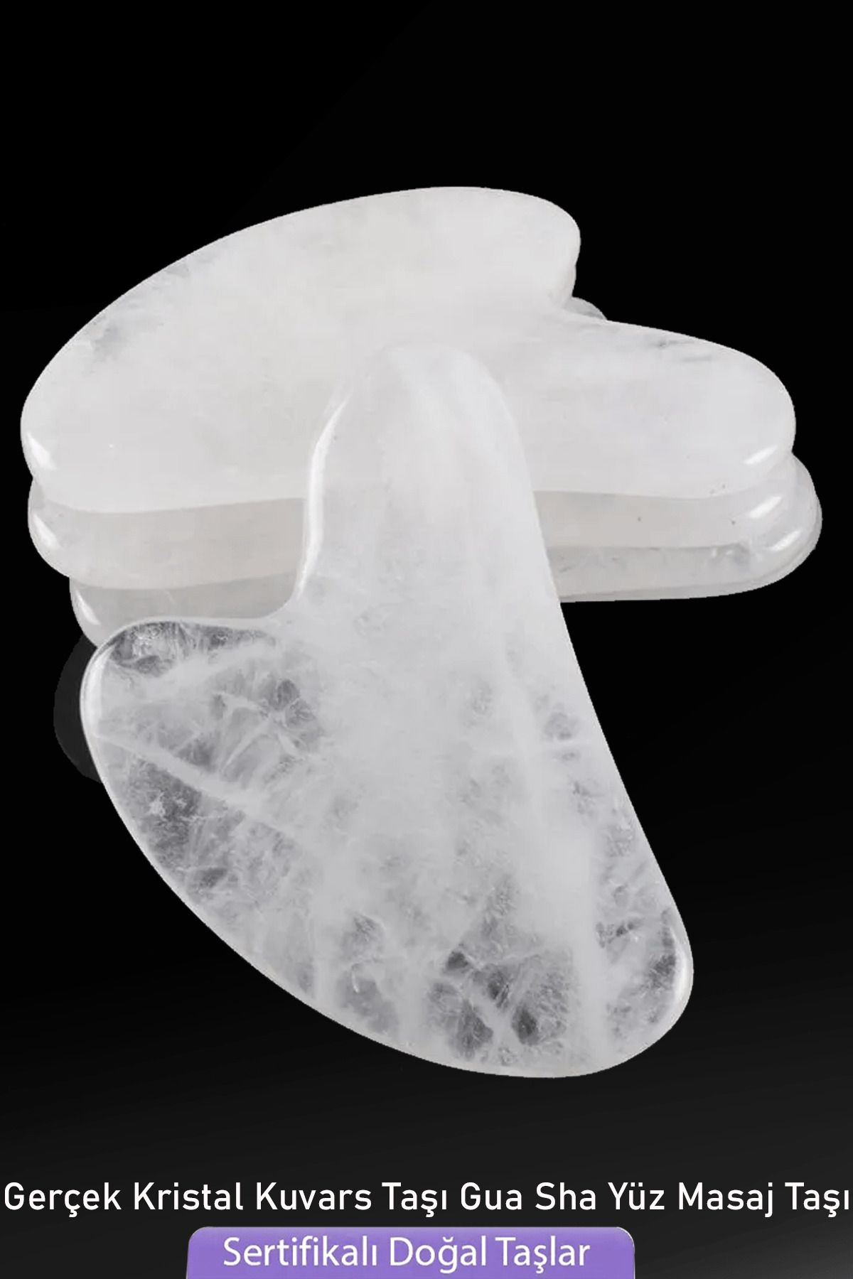 Sertifikalı Kristal Kuvars Taşı Gua Sha - Yüz Masaj Taşı Doğal Şeffaf Renk
